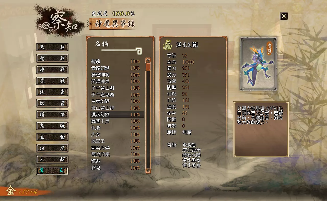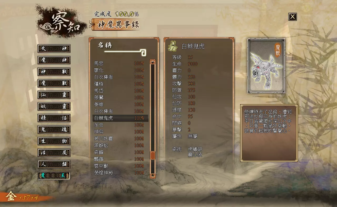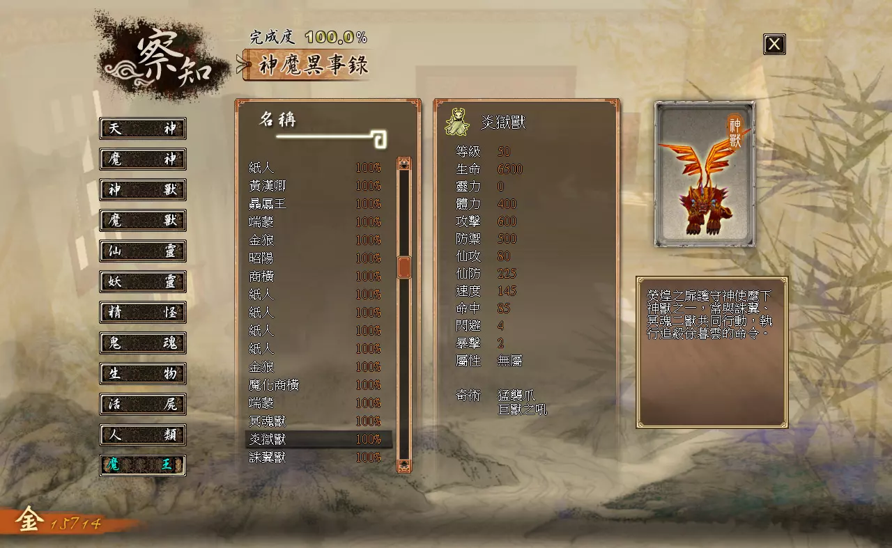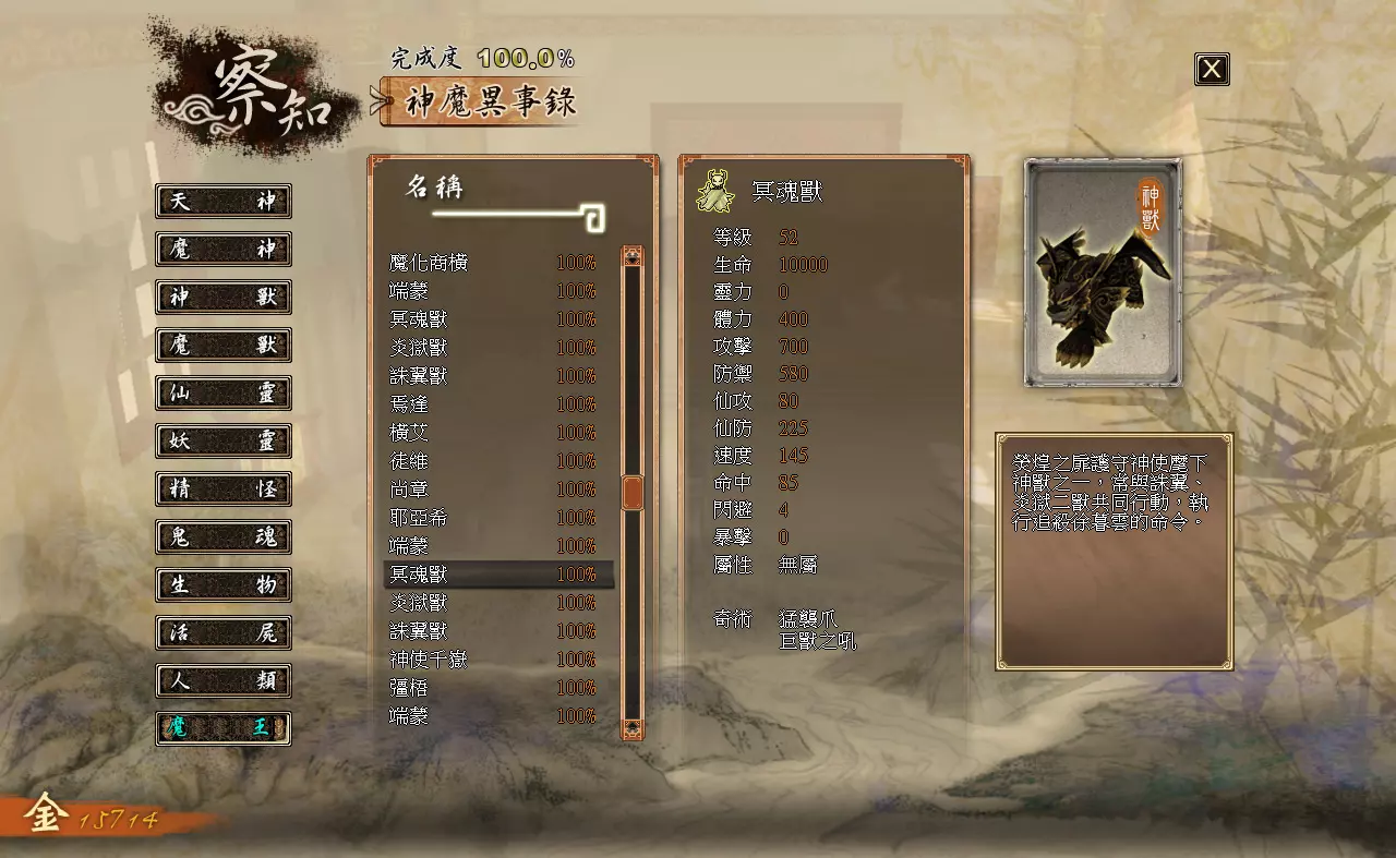 离开观星台时触发剧情,徐暮云独自折返回观星台山顶对抗幻兽。 BOSS:屠灵兽