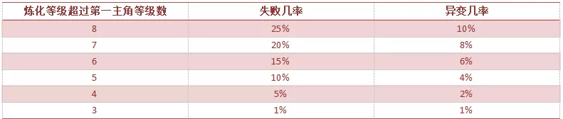 炼化产物为活物时,超过第一主角等级9级(包括9级)则无法炼化。若为装备、灵药、奇物时,超过第一主角等级2/3则无法炼化。 5.云之遥炼化表