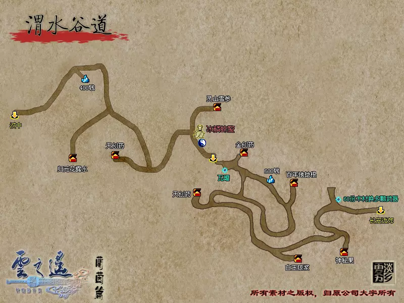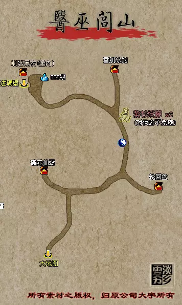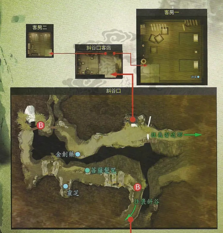 说明:战斗刚开始时BOSS并不会攻击我方,而是互相攻击。当任一BOSS生命低于一半后该BOSS将开始攻击我方,任一BOSS生命低于十分之一后另一只会逃跑。因此,如果没有把握同时解决两个头目,集中攻击一只即可,其中山魈掉落【九命猫脑浆】,鬼魈掉落【仙气返魂香】。 绘制好子午谷地图后,前往斜谷口。