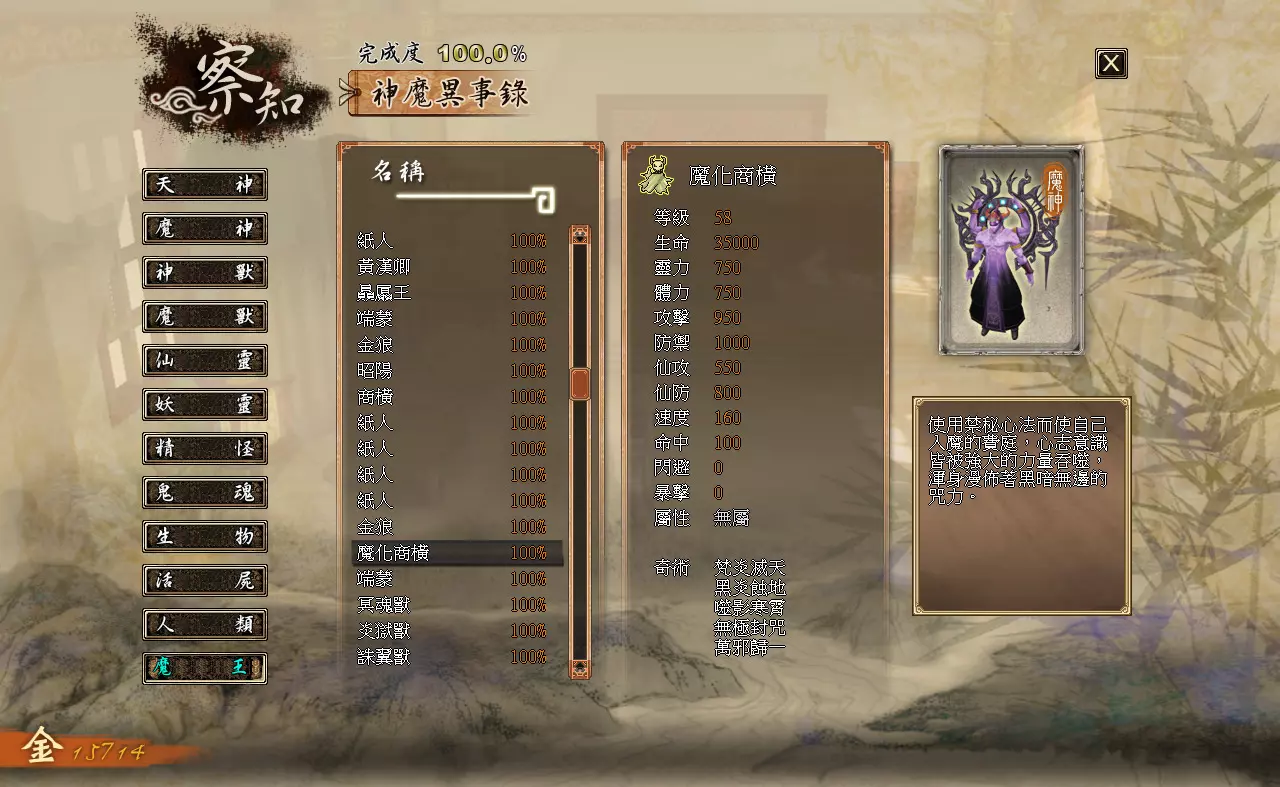到达祁山道最深处,遇到布下法阵的商横,进入BOSS二连战。 BOSS:商横说明:商横的属性随着生命值的减少而更改,高于2/3时为幽冥,介于2/3与1/3时为太阴,低于1/3后为玄阳,攻击法术属性也随之更改。 BOSS:魔化商横