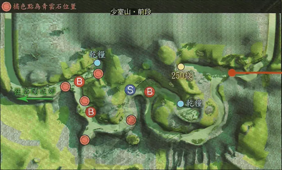 战胜后继续前进,到达少室山中段的碉堡,触发BOSS战。 BOSS:张皓 说明:暮云生命值低于一半时触发向张皓告饶事件,无论选择哪一项都无法避免战斗。 战胜后继续剧情,兰茵、张诰入队,前往少室山后段。