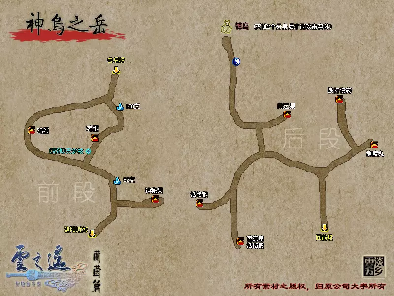 恐惧:太阴属性被幽冥属性攻击时可能附带,三回合内无法行动,防御、仙防降低一半且携带的法宝失效。 解法:白玉琼浆,如沐清风,坠雨摇风,玉鳞映玄空,普济施万民 云之遥大地图本篇:洛阳近郊
