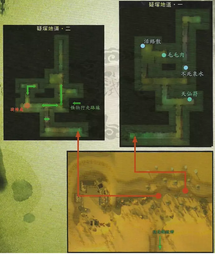 ◎支线任务:化龙转生其二 触发地点:褒斜谷 触发人物:大小魑魅 任务流程:与大小魑魅对话并战斗——与洛水畔小球儿对话——与洛阳前段民房二中羊儿对话 任务奖励:鬼鸡爪子/仙气返魂香(已拥有“鬼鸡爪子”) ◎伙伴支线:玉澧·荒村之变其二 触发地点:褒斜谷廊道法阵(具体见图) 任务流程:到达褒斜谷廊道法阵触发剧情,与鱼妖战斗,遭毁坏离队——返回长安向李道长汇报,选择“修复玉鲤”——收集破元仙露、活骨灵药以及蟠桃给李道长修复玉澧后加入 任务奖励:玄天护符(特殊奖励,仅限淳于恒装备)特别提示:调查褒斜谷廊道法阵,向李道长汇报以及修复玉澧时,淳于恒在战斗队伍中是触发淳玉特殊结局的条件之一,且不能选择“考虑看看”。玄天护符仅在修复玉澧后才能获得。完成此任务前,请务必完成之前与淳于恒、玉澧有关的全部支线,否则即使淳于恒在战斗队伍中也无法触发特殊剧情。