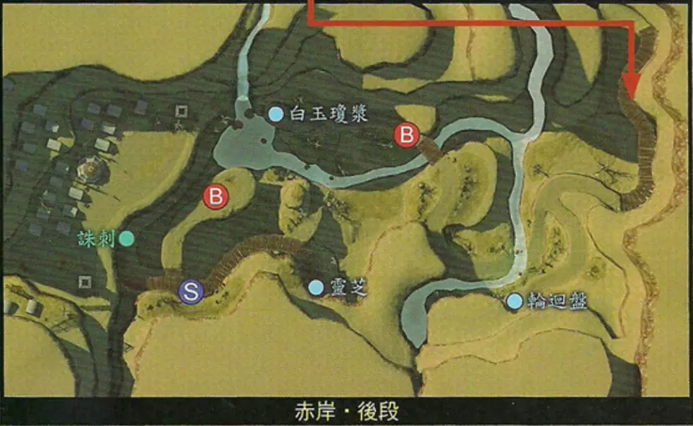 说明:仙术对BOSS无效,但BOSS属性为【玄阳】,用【太阴】属性的武器攻击可轻松取胜。战胜后继续前进,到达赤岸。往前走一段距离触发剧情,众人扎营休息,夜晚曹叡与磬儿相遇,触发BOSS战。