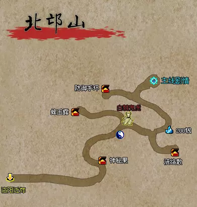 在北邙山山腰看到樊大夫被妖物袭击,触发BOSS战。 BOSS:白棘鬼虎