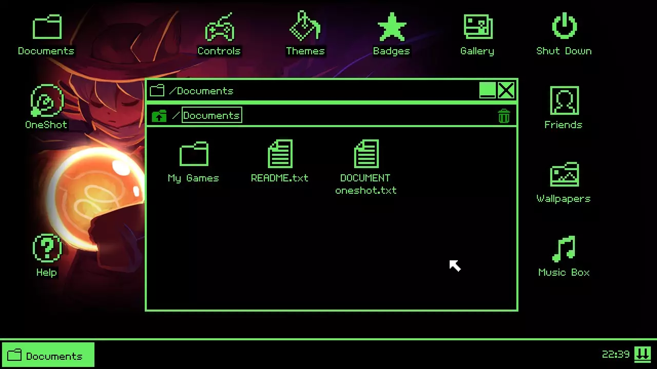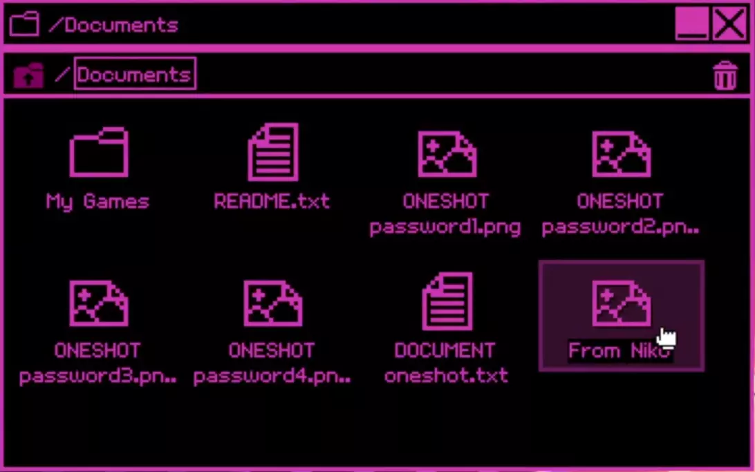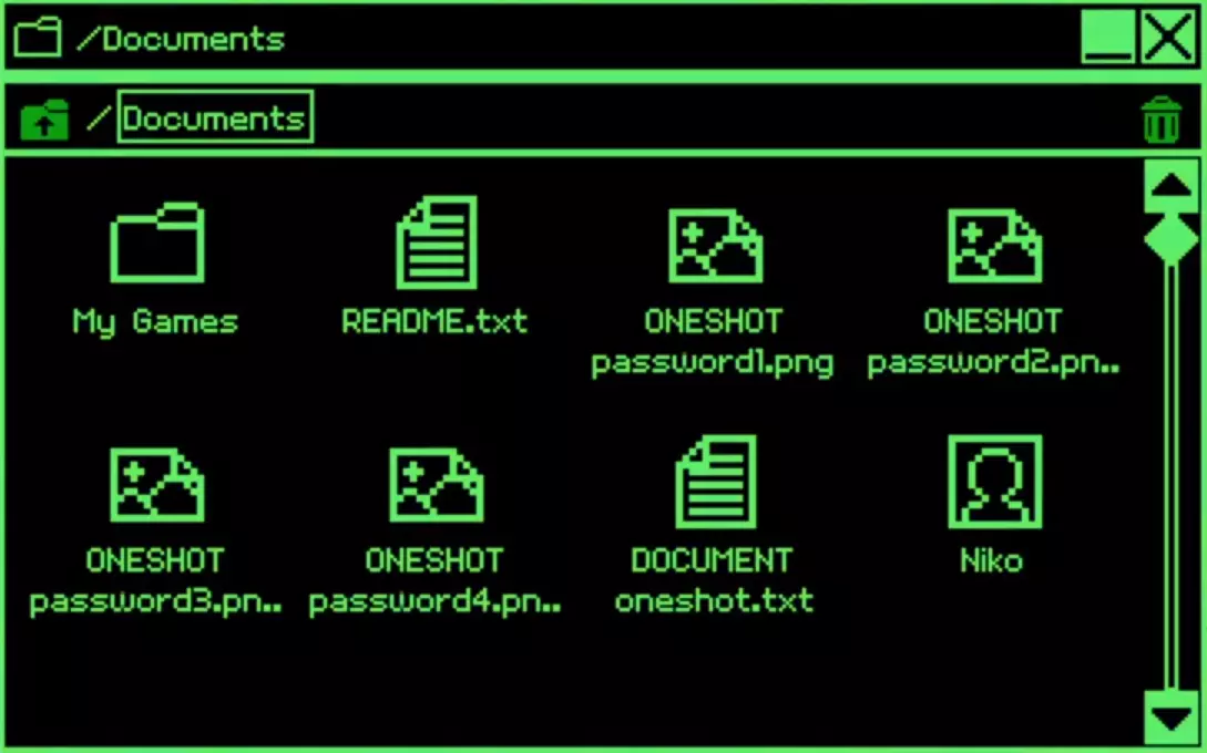 一份收集品、攻略及成就指南。包含所有壁纸、好友档案和主题。(点击图片可放大。) 一个大灯泡就是太阳。 成就开始:Oneshot 要获得Oneshot成就,你需要通过让尼科上床睡觉来保存游戏。必须通过让尼科上床睡觉的方式。如果在此游玩过程中,你哪怕有一次通过点击X按钮关闭游戏,都将无法获得该成就。 注意:本指南中提到的任何幻象只会在后续游玩过程中出现;否则,尼科会留意到某些事情,但不会明确提及。你初始拥有1个主题(紫色)和8张壁纸。完成本攻略后,你应该能获得10/10个主题和24/24张壁纸。