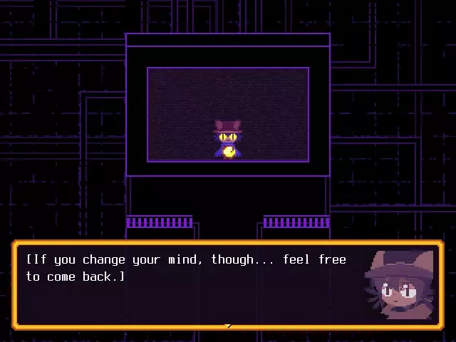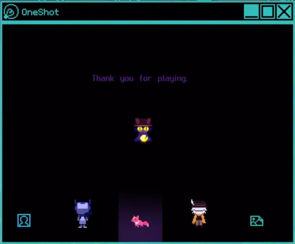现在回到游戏,会出现一个新选项,即【...】。点击它可以再次见到实体;他们会告诉你,他们可以让你再次体验这个世界,作为一段记录,源自尼科和他们自己的记忆——因为你已经拯救了世界,也安全地送尼科回了家。这是你在完成游戏后再次见到大家的方式。至此,《OneShot》的故事落下帷幕,给了你不止一次的机会去体验它。