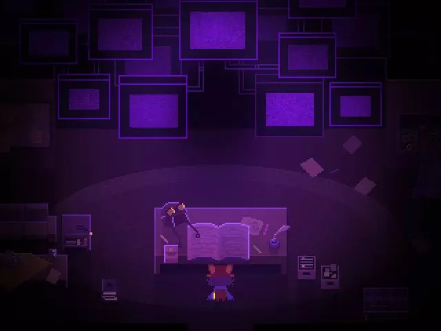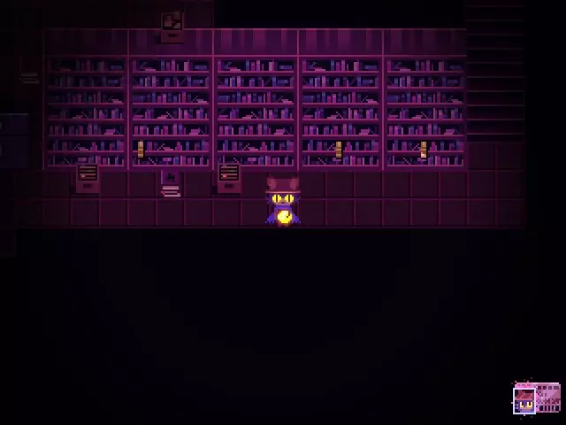 图书管理员机器人会允许你从它们身边走过,去见乔治——一个骰子头(其性格会根据显示的数字在每次游玩中发生变化),他为作者工作。你可以向他出示那本奇怪的日记,他会帮你翻译,并让你在他翻译时睡在他的床上。在此之前,你还可以点击所有特殊颜色的书籍来获取Bookworm成就,别忘了卧室里的那一本。