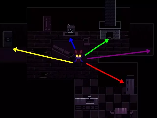 尼科在一个有电视遥控器的房间里醒来;拿起遥控器并引导他们走向窗户。在这里,你可以与遥控器互动,在照进房间的光线下确实能看到一些东西。遥控器会向你显示一系列不同颜色的数字;记住这些数字及其颜色——红色、黄色、蓝色和绿色——然后与电脑互动以遇见实体。完成此操作后,下方的门将会解锁。离开前,进入左侧的浴室,与干枯的植物互动以折断一根树枝,这是你稍后需要用到的。现在你可以离开这两个房间并进入客厅。