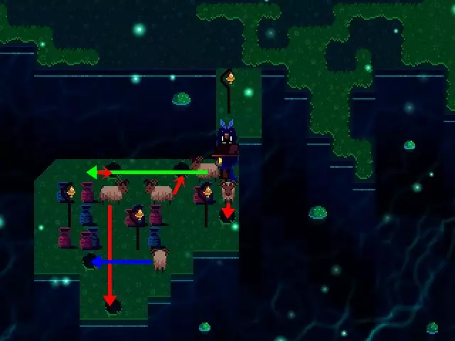 你会遇到牧羊人伊莱扎,她会请求你帮忙赶公羊。一次就成功完成这件事可以获得【Ram Whisperer】成就——无论你尝试多少次,都能获得羊毛,这在之后会派上用场。赶公羊的方法:(可能的解决方案:)当面向左时,将第一只公羊移到尼科前方比暗点更远的位置,然后将面向下时在他前方的羊移到其位置。回到第一只羊那里,把它放到自己的位置,然后再处理第三只羊(进入该区域并向下看时面对的那只),让它移动一格。第四只羊是在水边朝上的那只;在移动最后一只可用的羊之前,先把它放到自己的位置。然后尼科会被送回牧羊人那里,并得到羊毛。