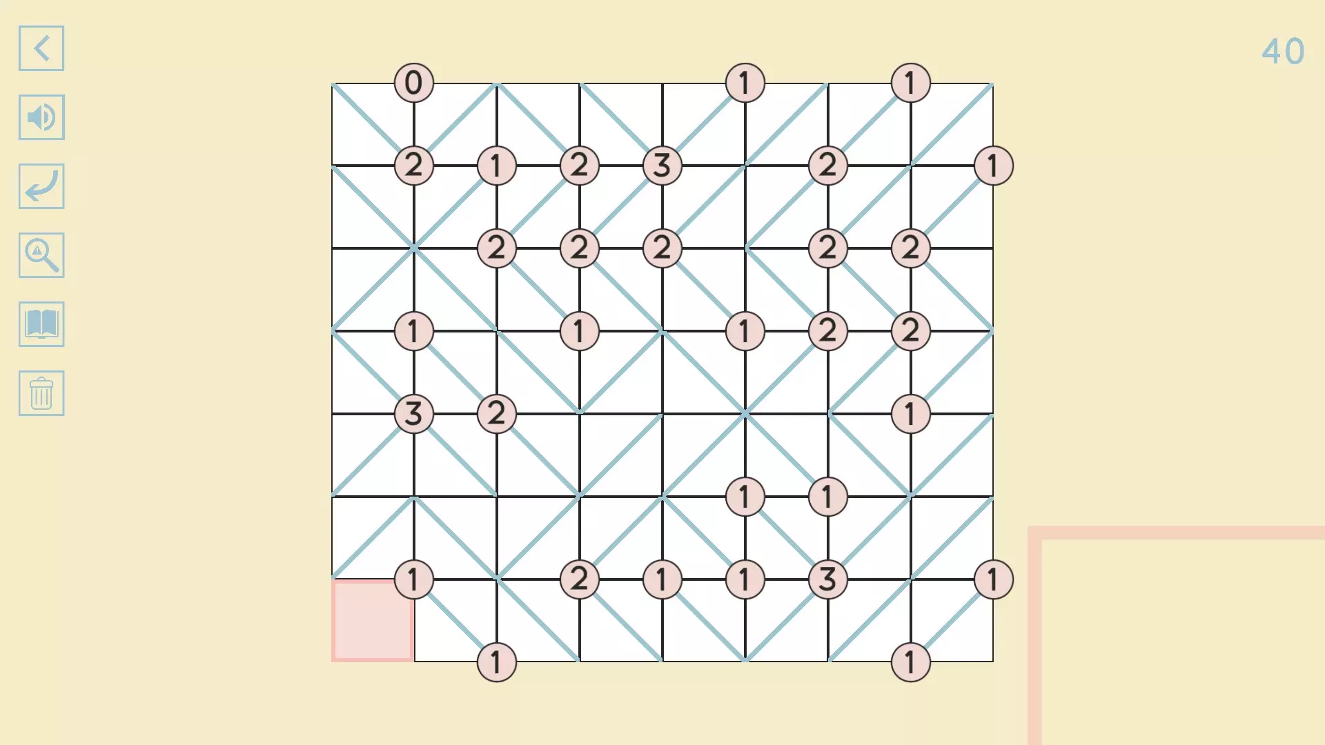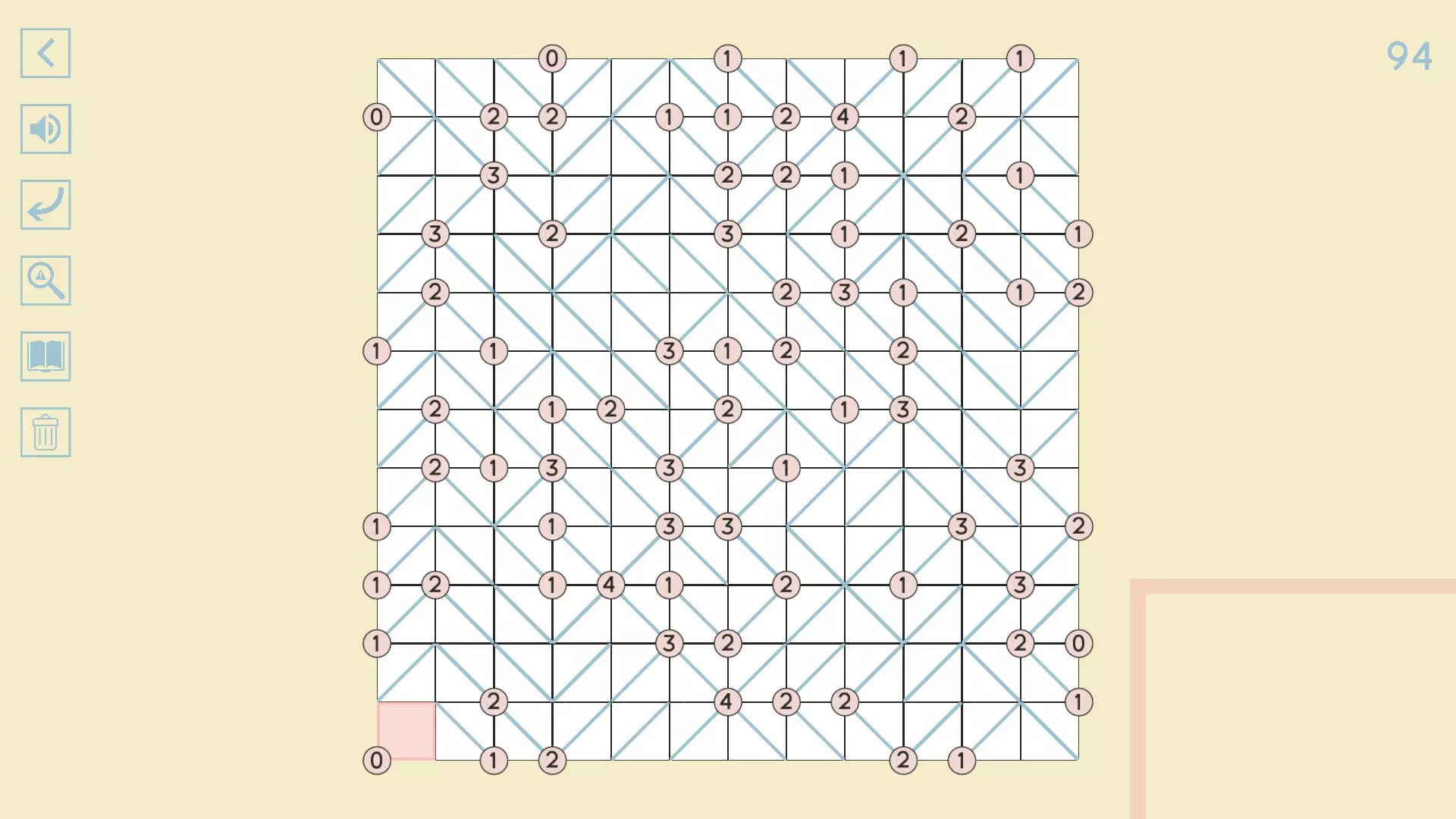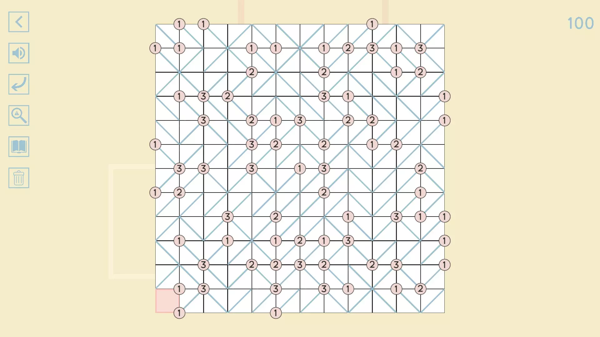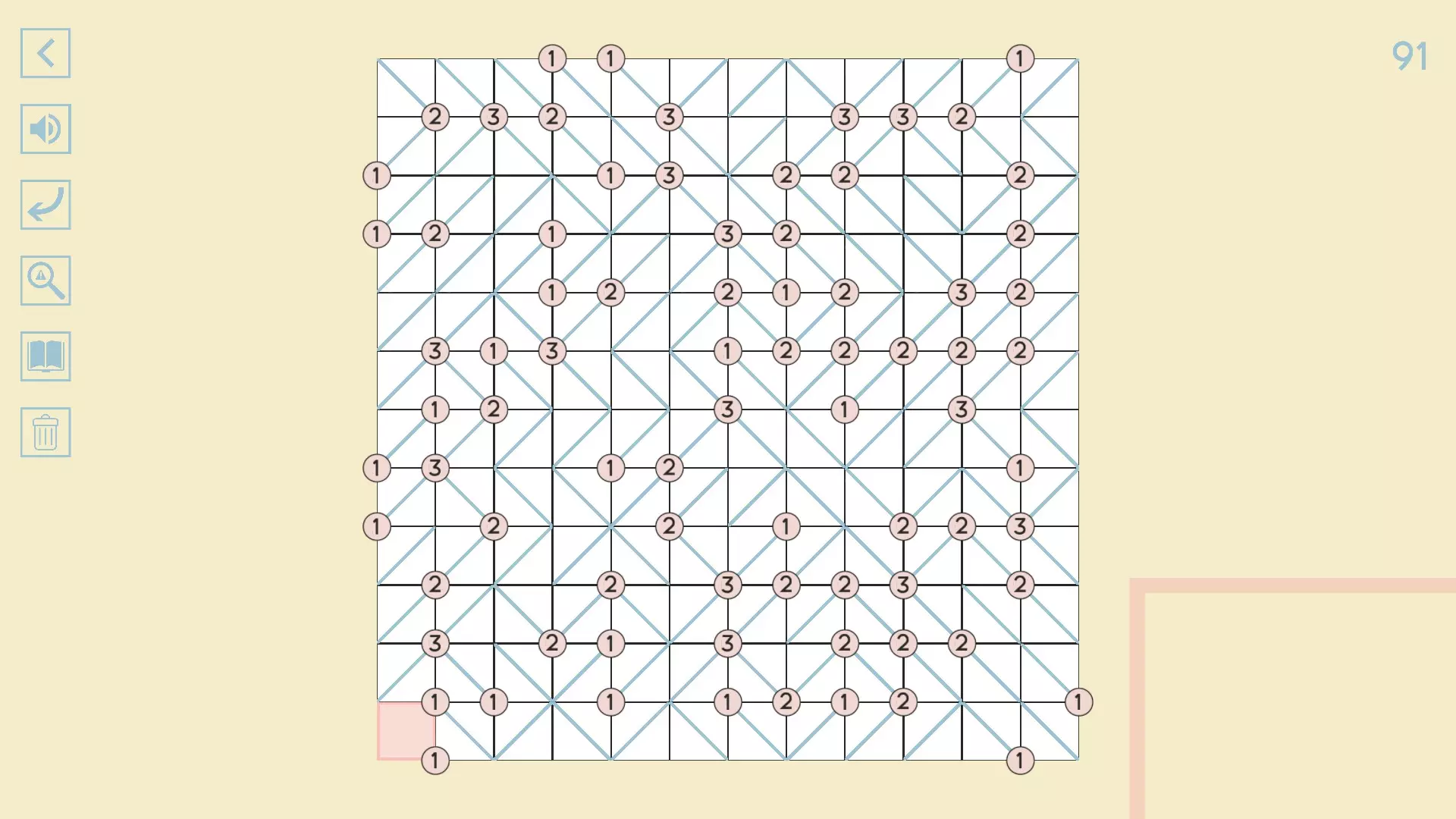 完整图片指南 简介 除最后一个方块外,100个关卡均已填满! 开始时,点击方块的角,向该角绘制线条。 1-10