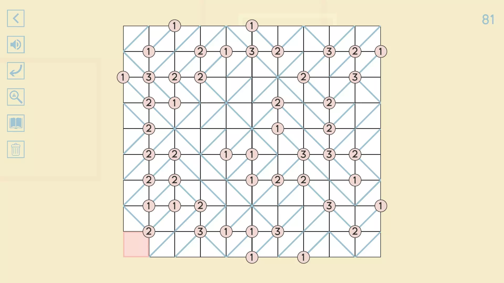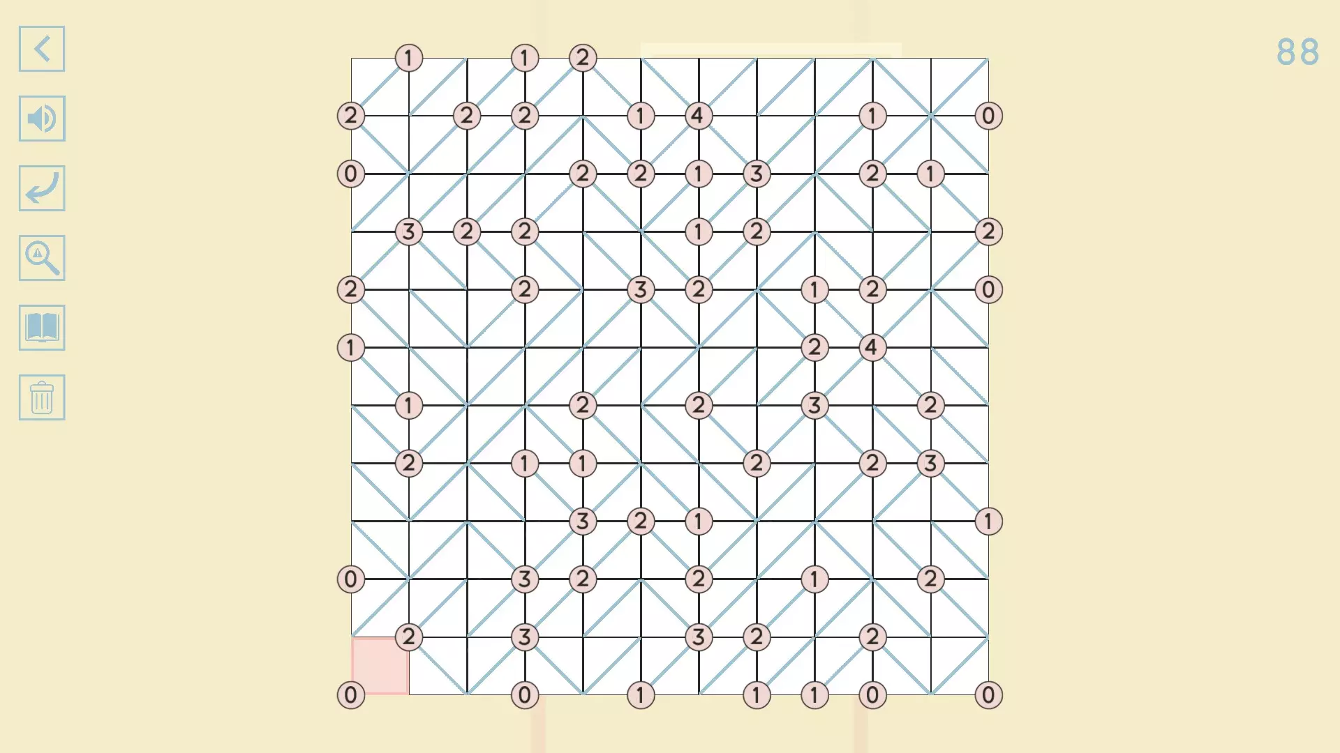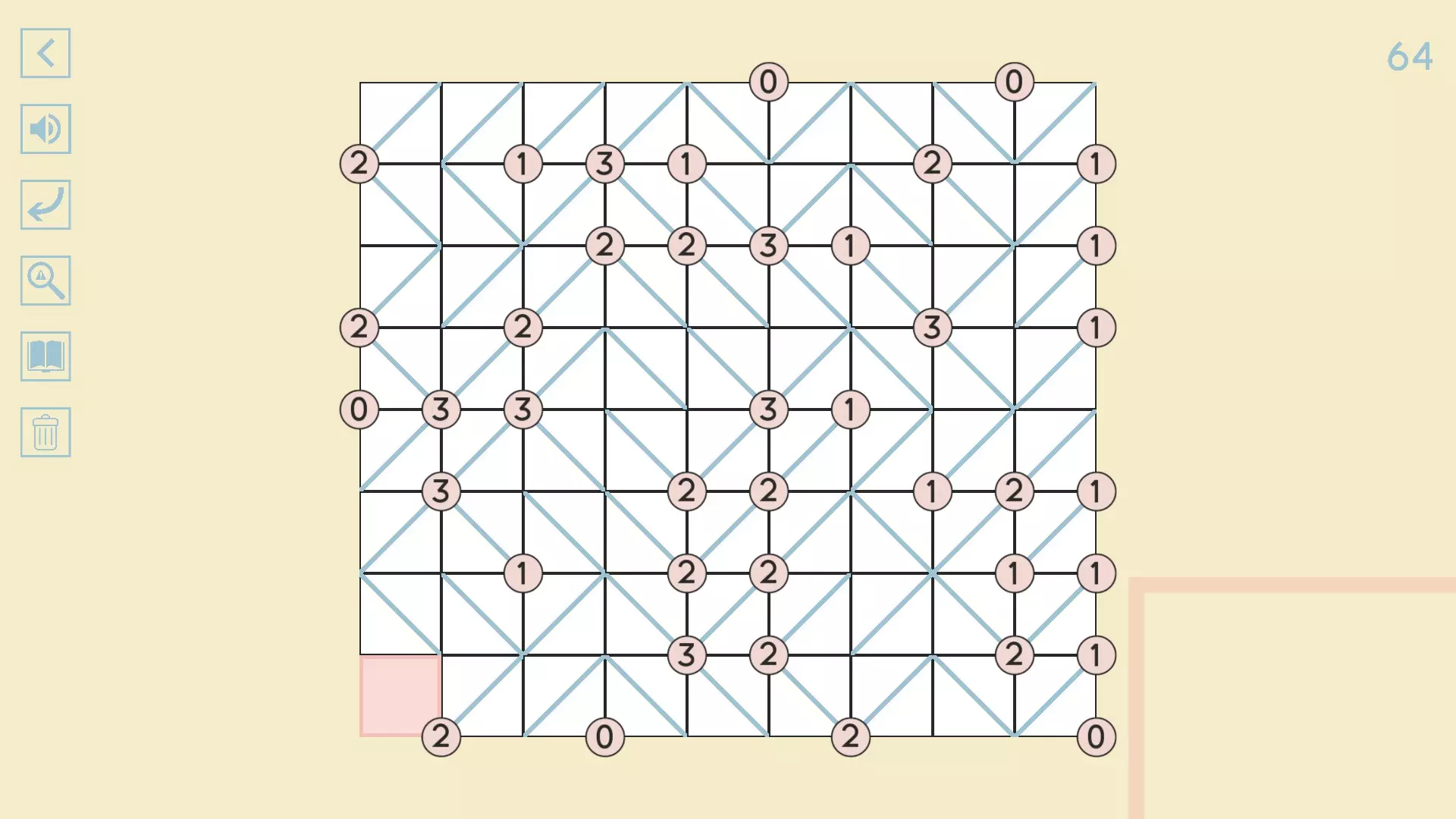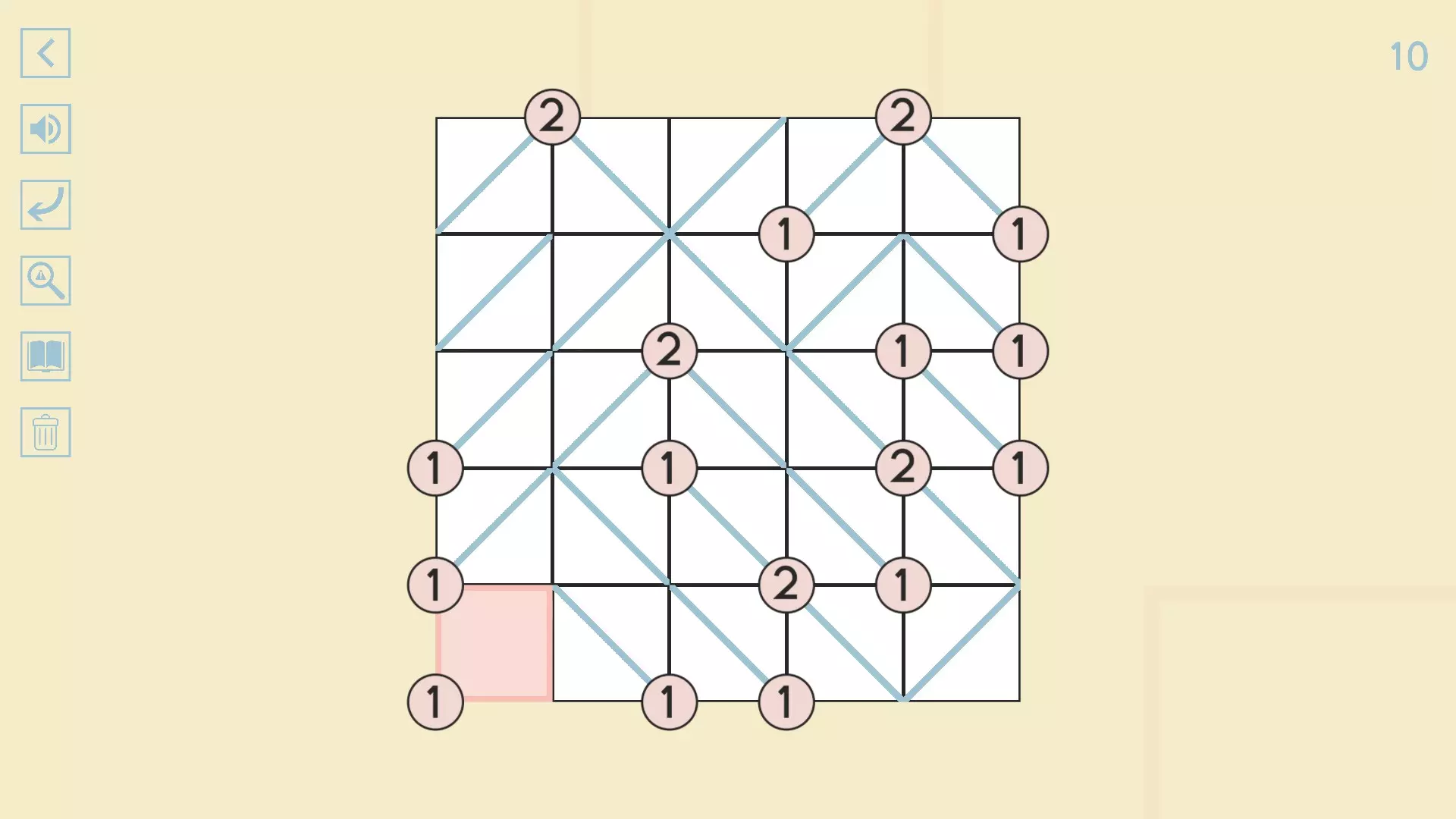 完整图片指南 简介 除最后一个方块外,100个关卡均已填满! 开始时,点击方块的角,向该角绘制线条。 1-10