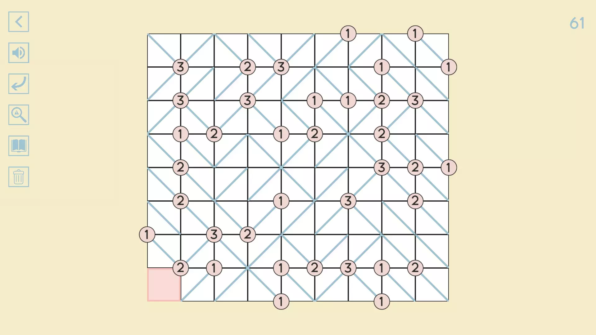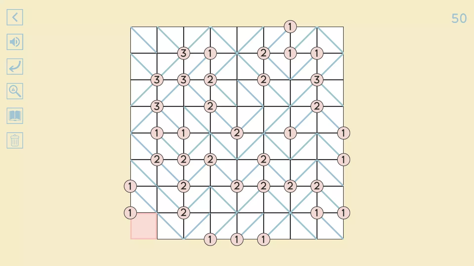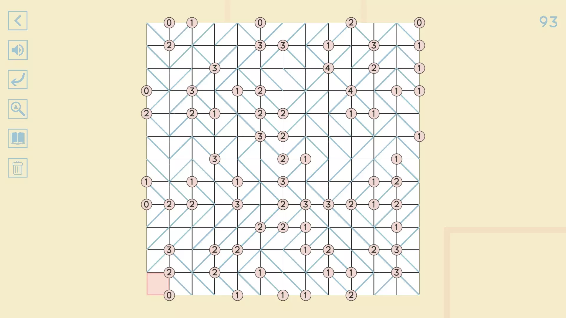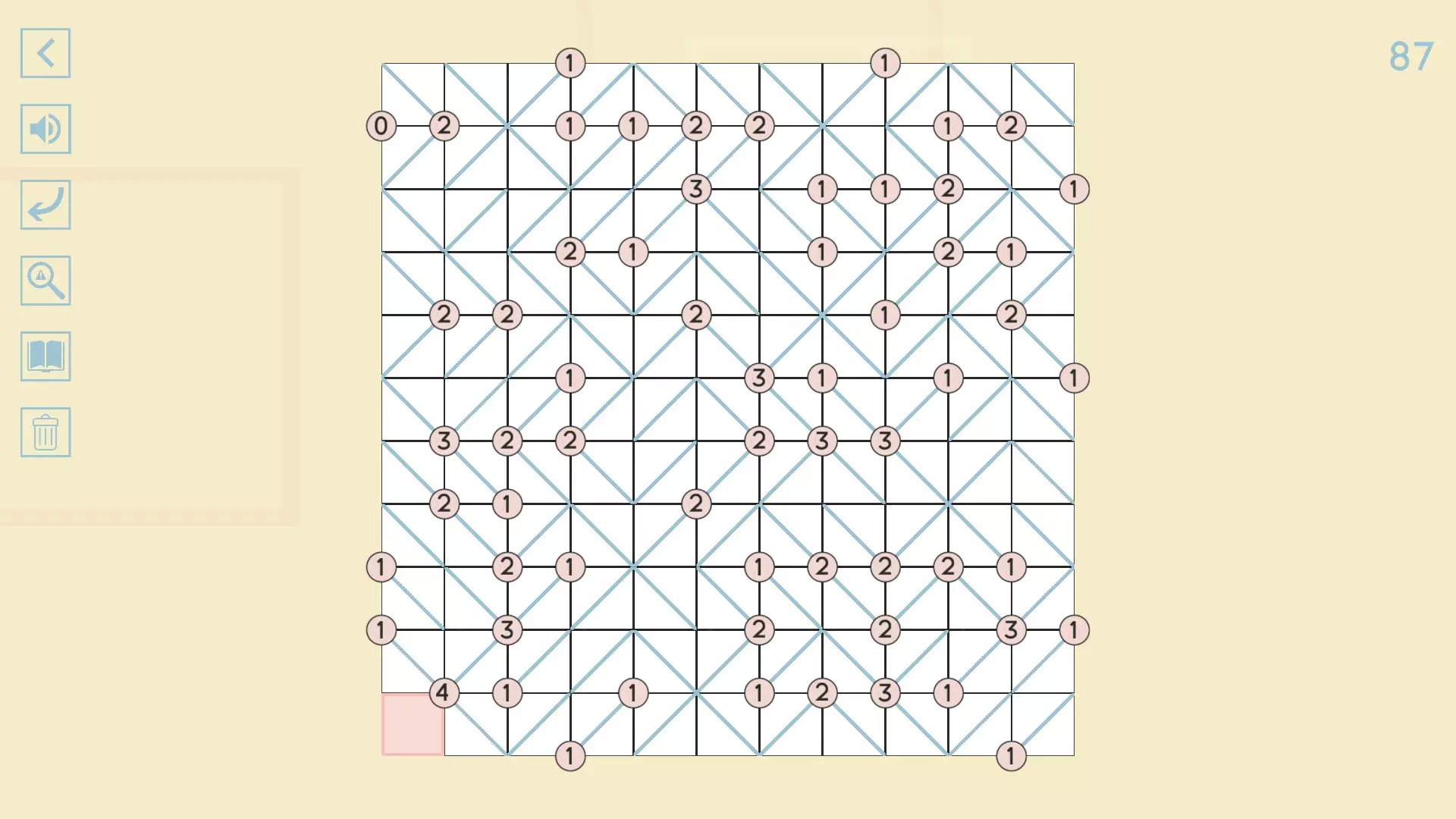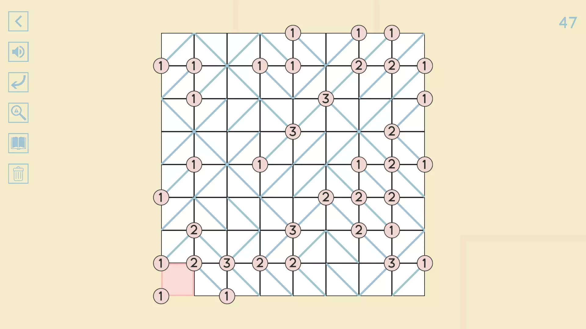 完整图片指南 简介 除最后一个方块外,100个关卡均已填满! 开始时,点击方块的角,向该角绘制线条。 1-10