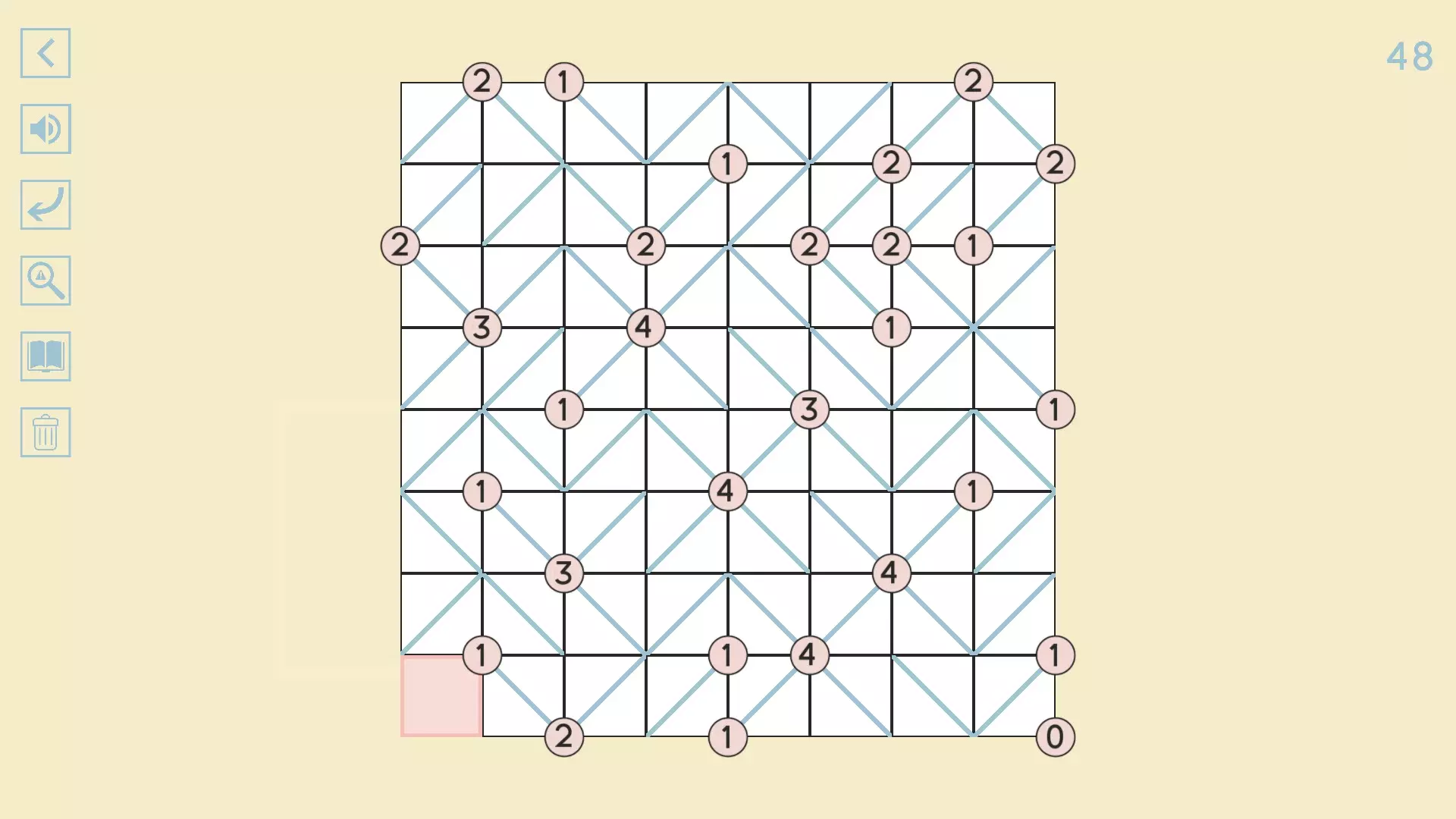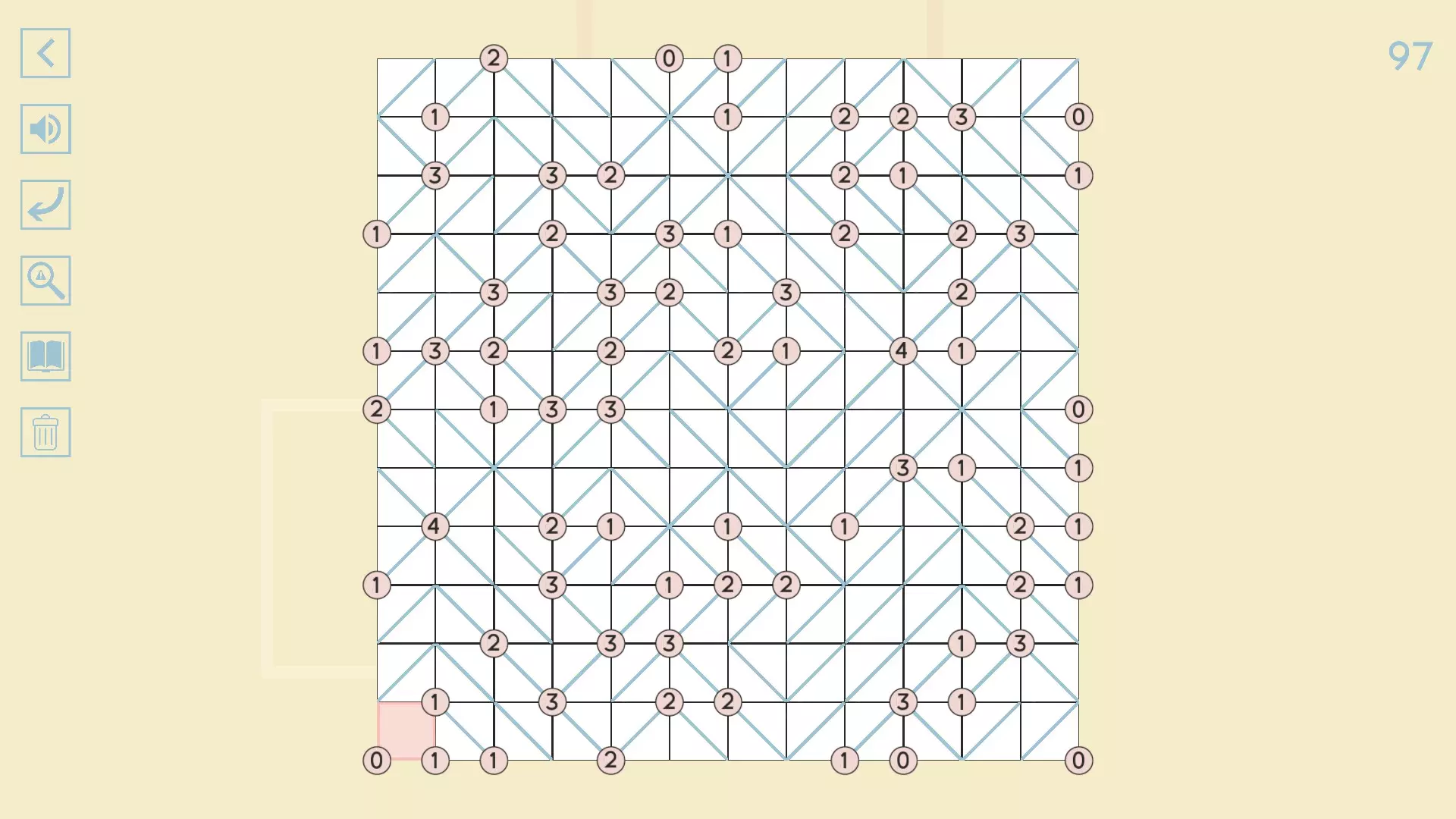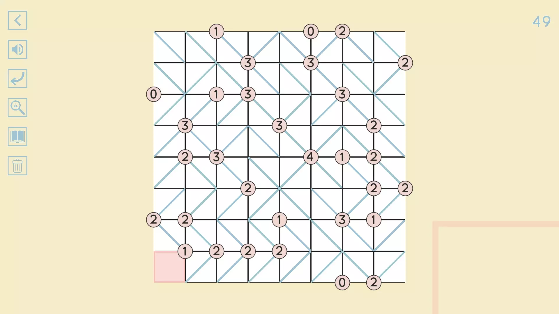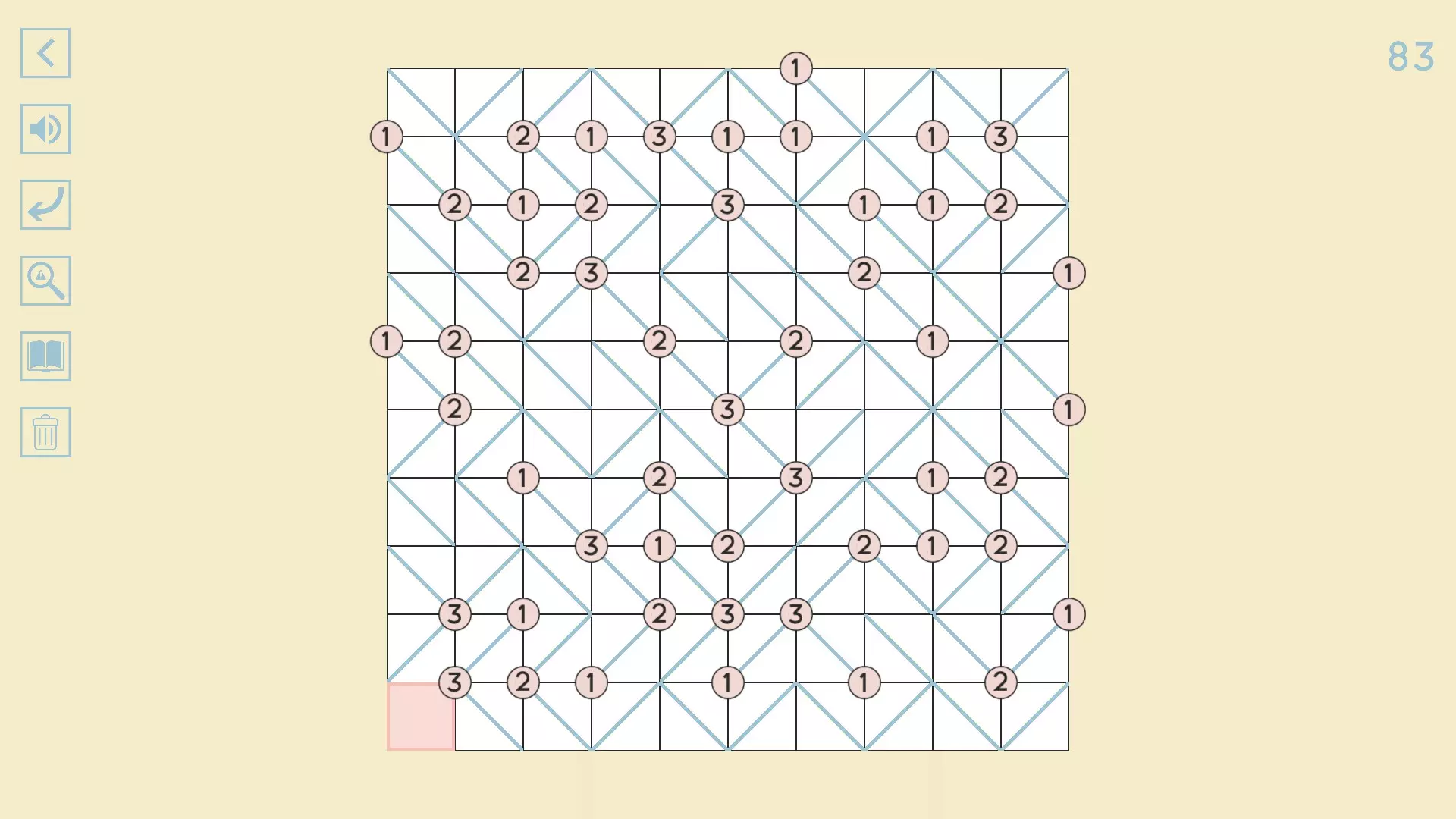 完整图片指南 简介 除最后一个方块外,100个关卡均已填满! 开始时,点击方块的角,向该角绘制线条。 1-10