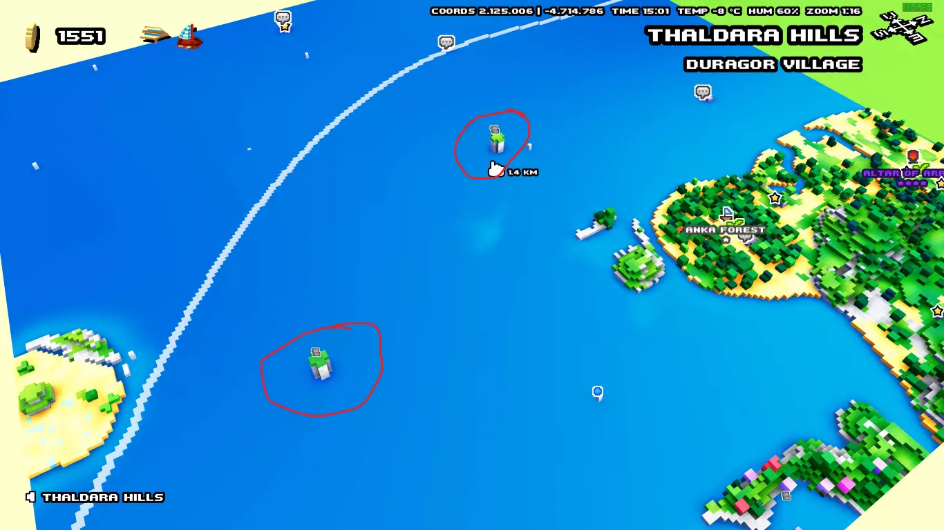 如果你的区域内有大海,那么在获得小船后,你应该立即检查区域内的所有岛屿,因为乘船航行比步行快得多。