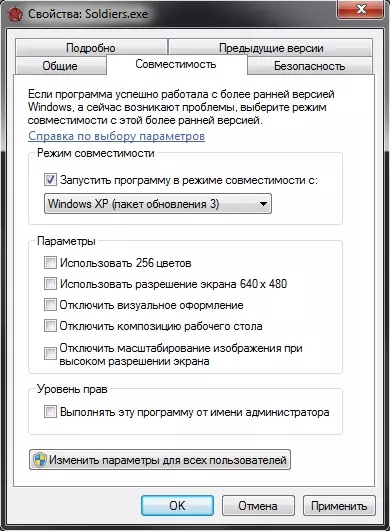 右键点击游戏可执行文件Soldiers.exe > 属性 > 兼容性选项卡。在那里应勾选“以兼容模式运行此程序”,并选择“Windows XP(Service Pack 3)”,然后点击确定。