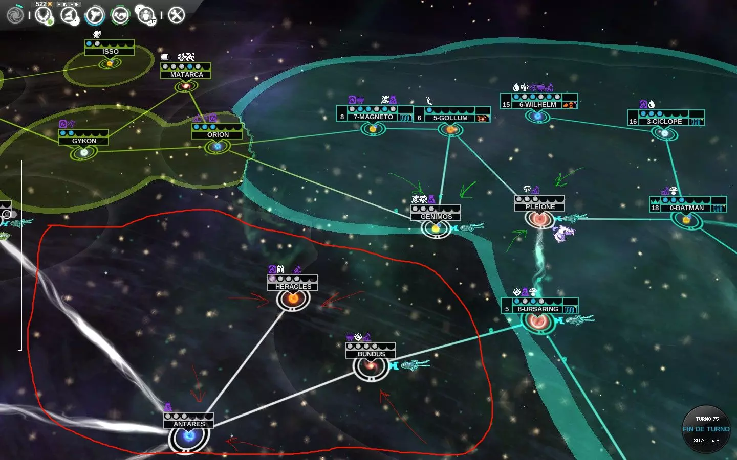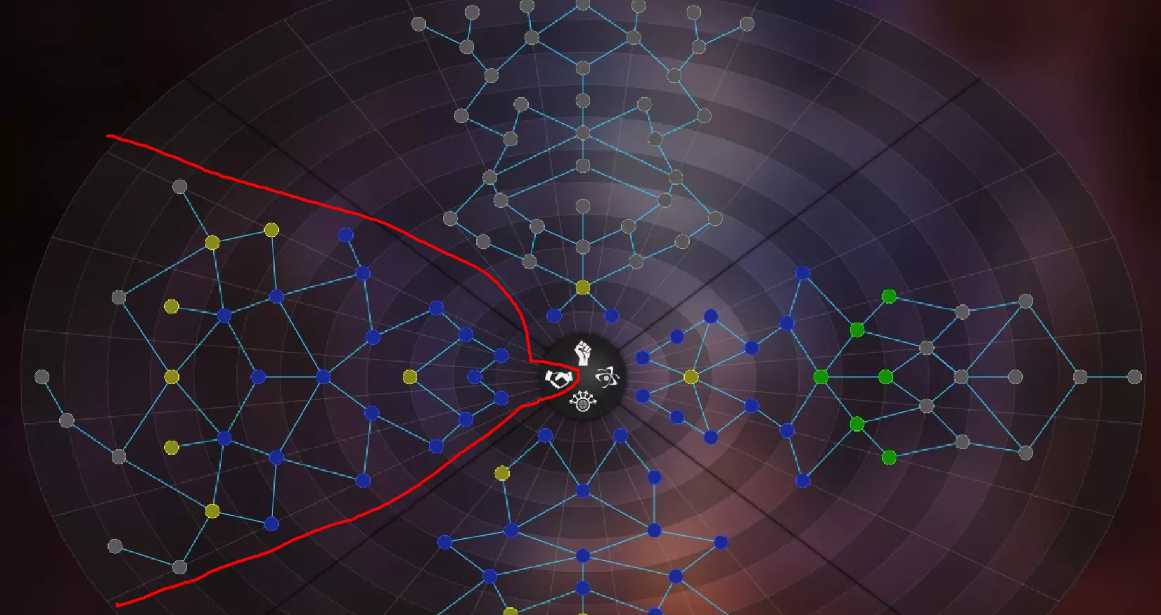 - 星系中的【影响力范围】:在殖民影响力范围外的星系前,需先扩大影响力范围,以免失去支持度。
