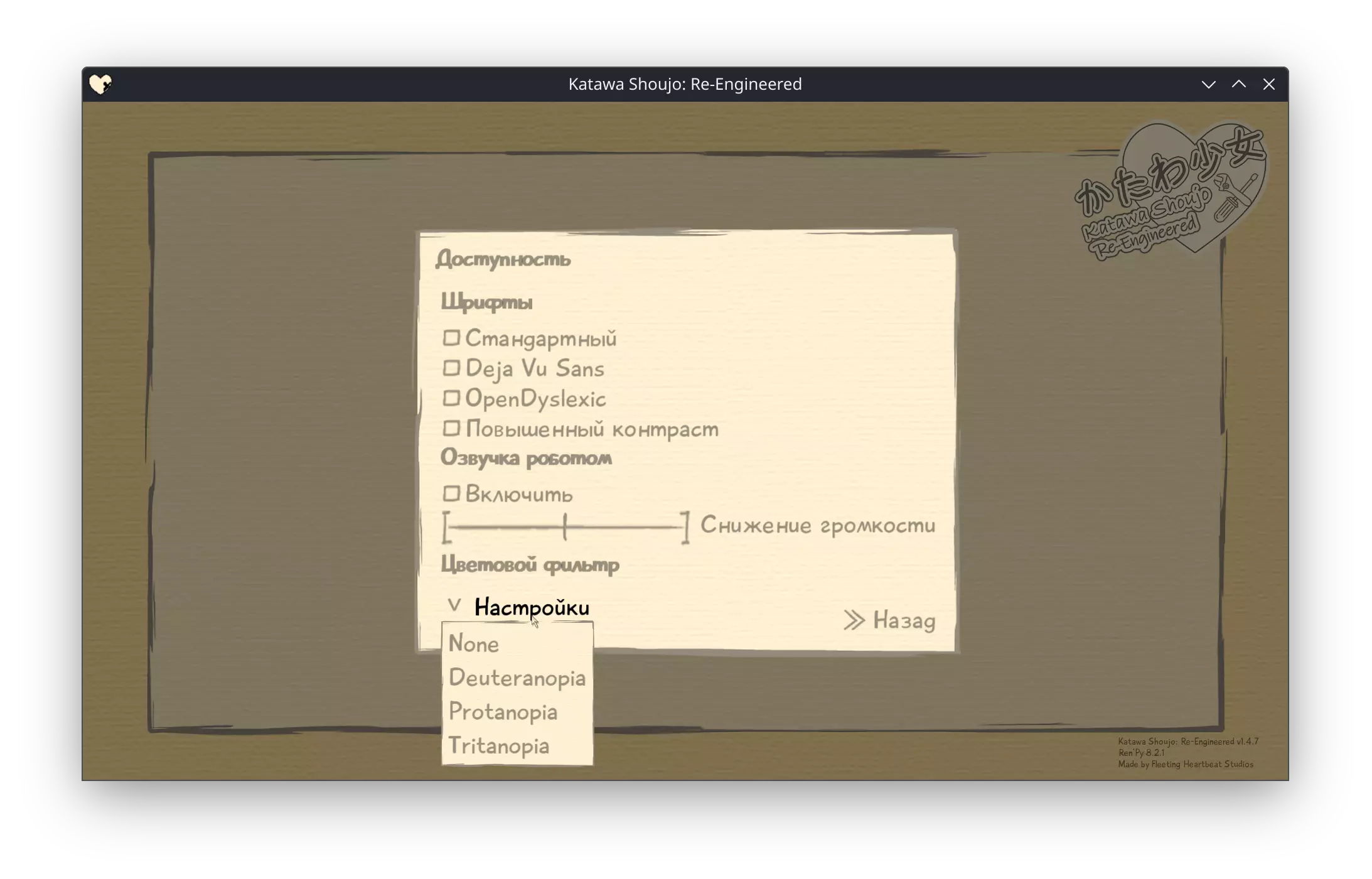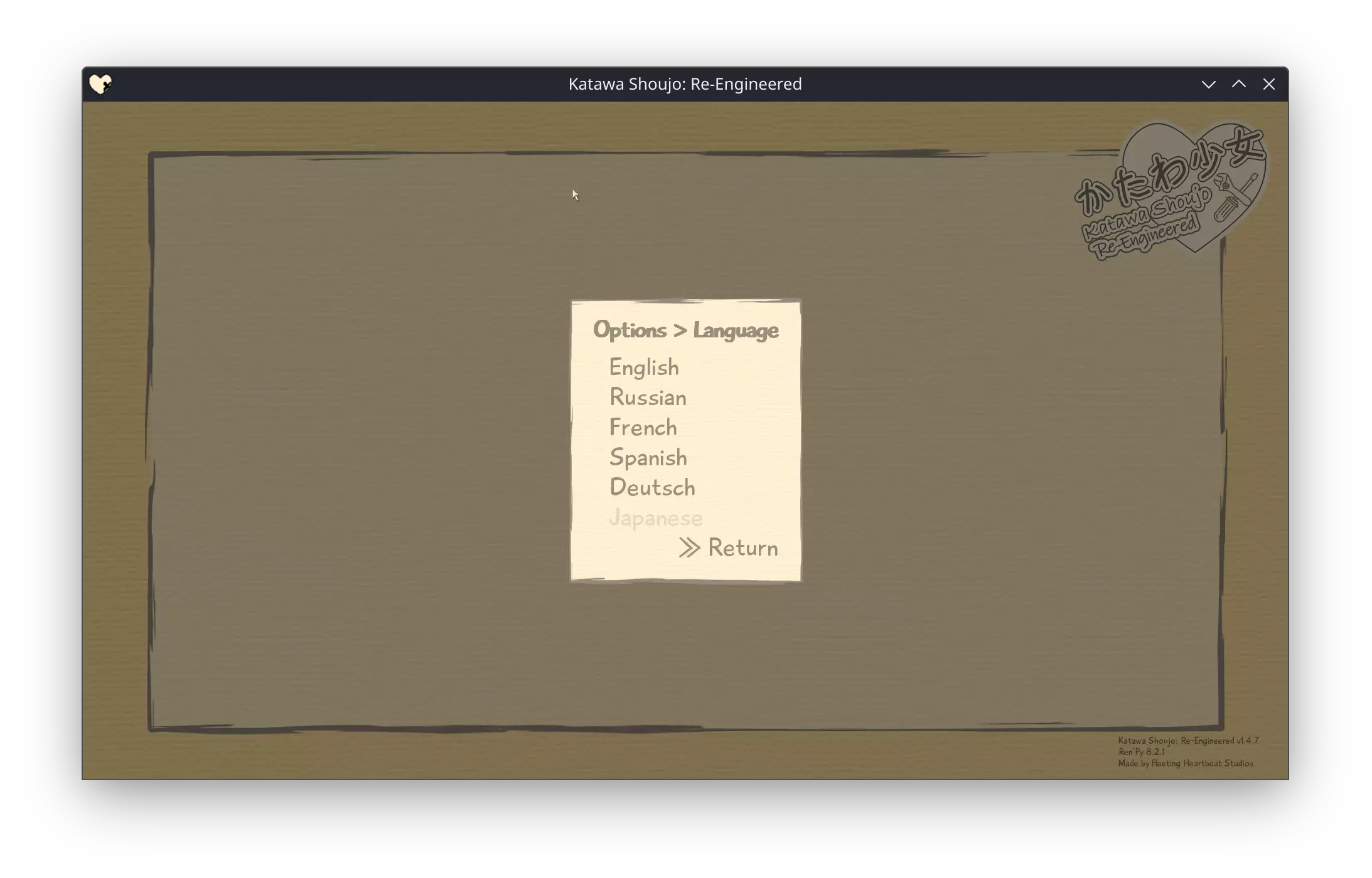 在本指南中,我将告诉你,亲爱的匿名用户,如何通过几个简单的步骤安装带有内置俄语化程序及其他附加功能的正常版本《 katawa shoujo 》,治愈久夫的勃起功能障碍,并在价值一万的vivo智能手机上玩这款经典老游戏。 哇哦,《 katawa shoujo 》上steam了!2024年悄然而至,一切都显得平静无波,然而4LS的成员们却突然决定将《 katawa shoujo》正式发布到Steam平台——距离最初的版本发布还不到两年!……哦不,已经过去整整十二年了。 而你,亲爱的玩家,满怀期待地下载了游戏,结果却发现,就像我们那位亲切的“外国代理人”奥列格·尤里耶维奇·廷科夫曾经说过的那样……