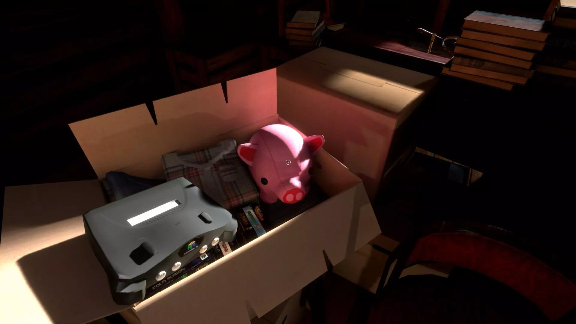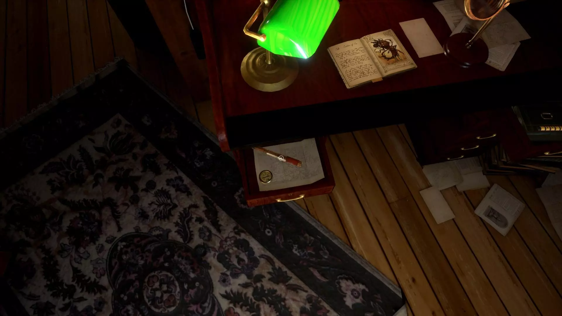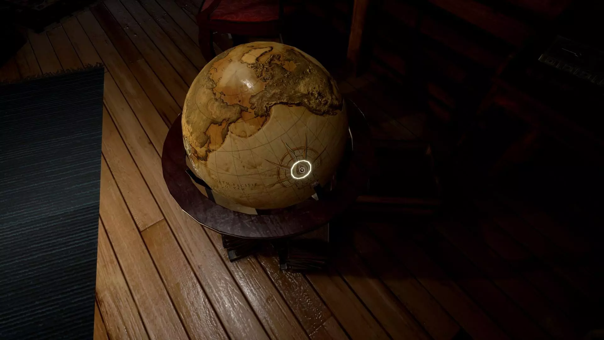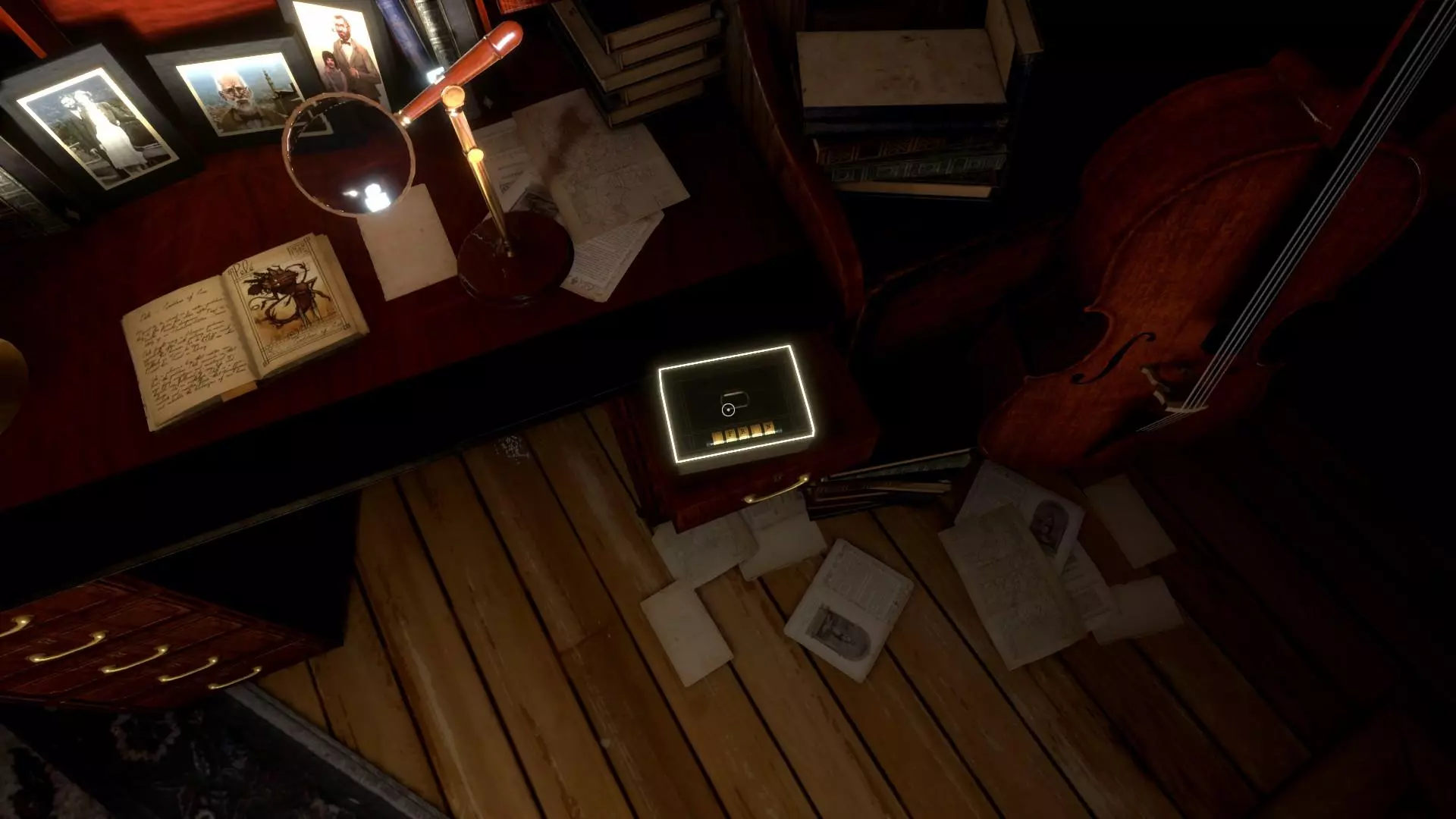 会出现项链的第二部分,把它拿起来。地球仪后面有个小桌子,在那里拿钥匙。按“V”键,找到并拿起所有日记页面和照片。 打开盒子(截图),切换到项链(按“V”键)并放入PIXIE。按住“Z”键进行缩放。