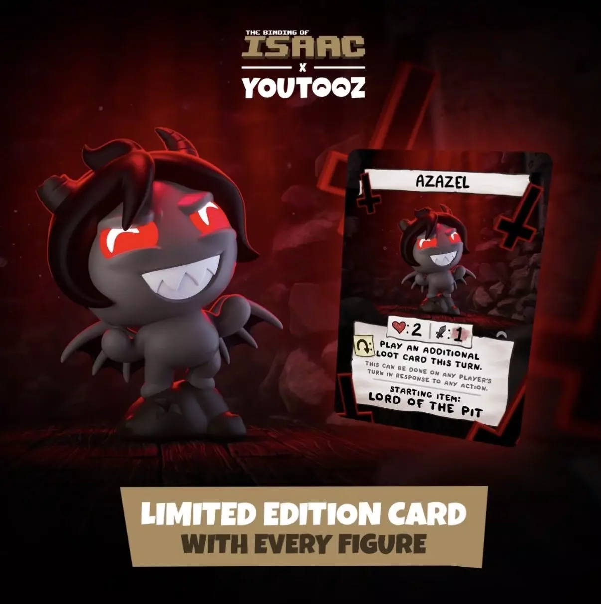youtooz ✖《以撒的结合》 今日,《以撒的结合》制作人【Edmund McMillen】宣布,与youtooz合作推出的 Azazel & Death 手办,现已上线。 youtooz官网显示售价:单款29.99美元(约合206rmb) 预计发货时间:2026年6月1日 – 6月30日 尺寸:高约9-10cm 状态:预订中