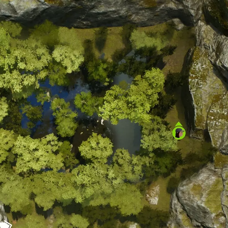 乔治亚森林 在这个区域,你需要前往东北方向,找到岩石中的通道,这样就能到达有池塘和鳄鱼的区域。 在该区域内,如果你一直沿着岩石行走,可能会偶然发现一颗羊肚菌。