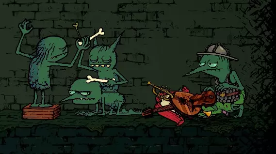 最简单的是喇叭。它在整个塔中都能找到。其余3个乐器从塔中的普通怪物(哥布林)身上掉落。 当我们把乐器交给吟游诗人后,窗户里会出现村民并向吟游诗人投掷物品。 收集到所有乐器后,吟游诗人会将它们组合成一个大型乐器。