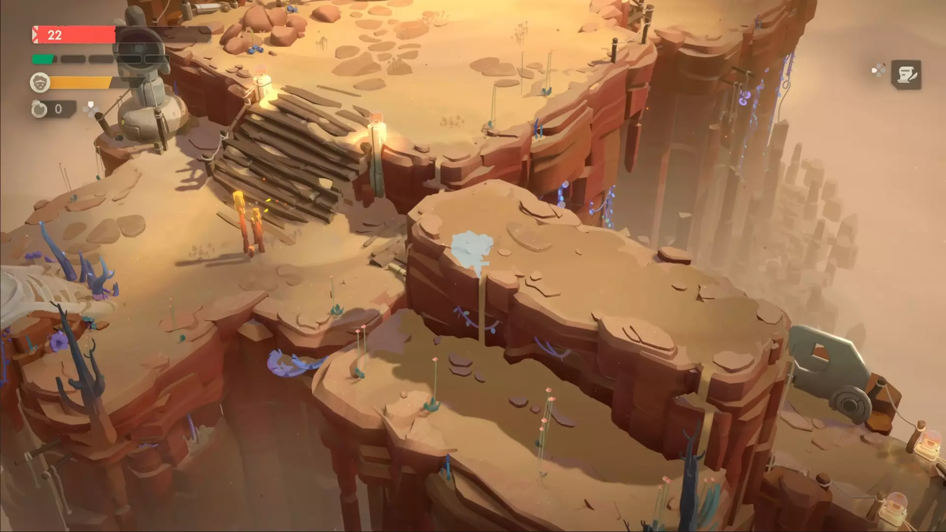 沙漠中的隐藏宝藏:誓言 “在沙漠中,能听到锤子声的地方,一块刻有刀刃的石头正等待被发现。” 这并非指实际的声音,而是你在冒险过程中可能遇到的铁匠。 当你在冒险中选择节点时,选择标有锤子图标的那个。 该节点的布局可能有所不同,但你需要寻找包含通往另一区域的木制平台的路线,就像这样: