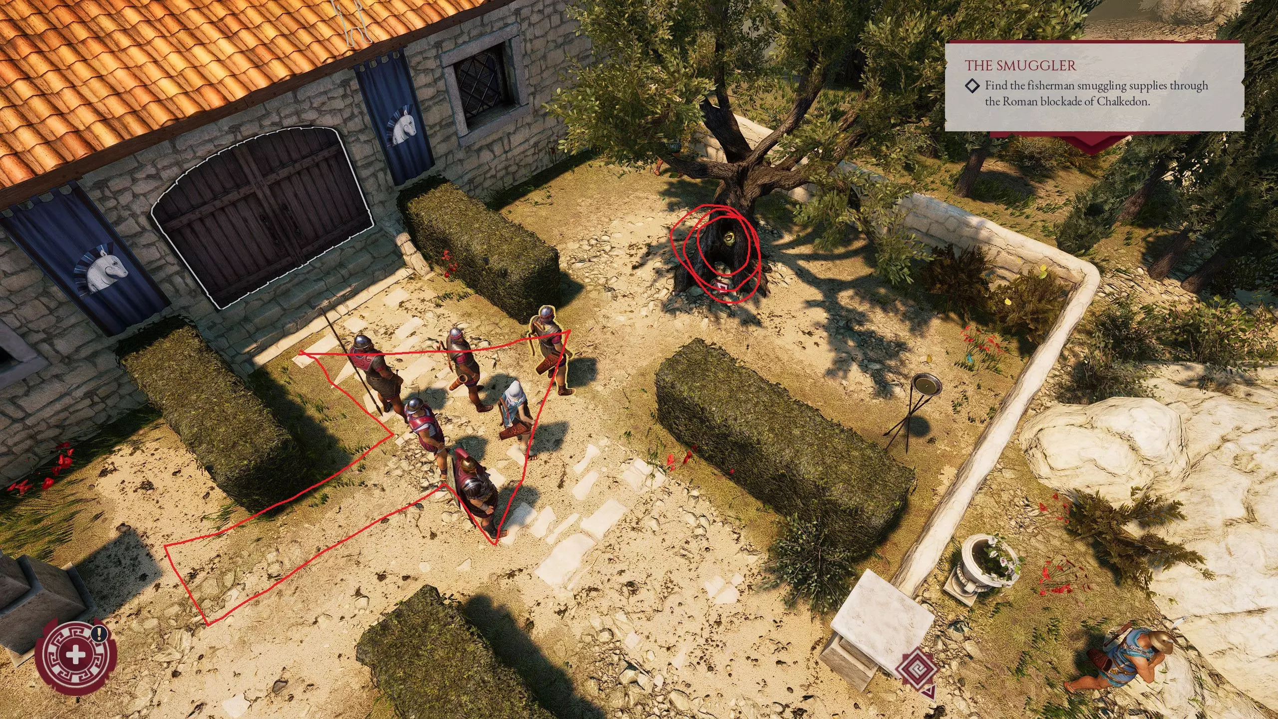 在你进入村庄的另一侧,有一座希腊风格的别墅,旁边带有一个花园。在花园的一棵树里,你会找到你的第一条线索(除非你按住ALT键来显示物品轮廓,否则这可能是整个过程中最难的部分)。 拿到物品后,在你的物品栏中将鼠标悬停在该物品上(在后续步骤中找到另外两个线索物品时也请这样做)。