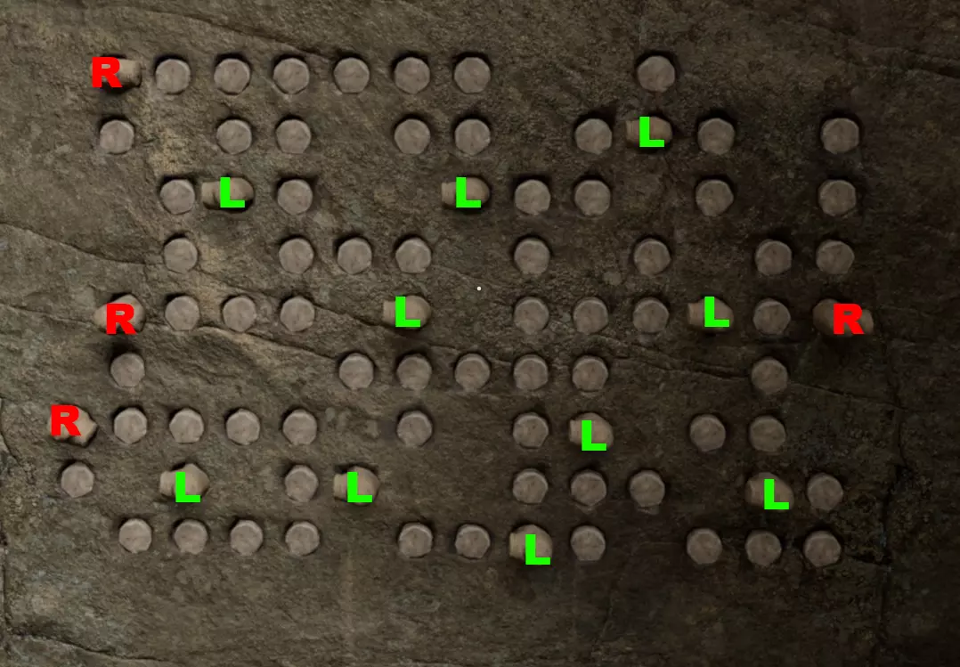 游戏结尾处有一个秘密宝库。以下是打开它所需的条件: 前提条件 你需要在游戏中收集至少49个【远古遗物】。第50个遗物只有在 credits 滚动结束后,你能够再次自由探索伊拉克时才能获得。集齐全部50个遗物将解锁 Shadows out of Time 成就。 关于成就的重要说明 你需要在 inventory 中拥有全部50个遗物才能获得【Shadows out of Time】成就,由于你可以用50个遗物中的49个来解开宝库,因此请确保在解开宝库之前,你的 inventory 中拥有所有遗物。解开这个谜题后,会移除所使用的遗物,并且你将无法获得成就。因此,如果你打算用49个遗物来解谜,且想要获得成就的话,一定要先收集齐全部50个遗物。 解法: 四个墙壁区域都需要将古代 artifacts(古物)放置在正确的位置并旋转到正确的方向。这是我使用的解法(可能还有其他解法)。注意,每个古物可以向右旋转(激活所有正交方向的空格)或向左旋转(激活其周围的所有空格)。 完成此操作后,你将获得最后的日记笔记,并且(如果你已收集游戏中的其他笔记)解锁【Archivist】成就。有趣的是,如果你足够用心,在抵达宝库前收集到全部49个遗物,就能直接解锁这段过场动画,无需继续推进剧情。这会让你看到的过场动画在时间顺序上显得毫无逻辑(为什么沃斯还没安装好所有宝石,约柜就出现在南极洲了?如果洛克斯还在这里,那谁的脚印会通向约柜之外?),而且你甚至能在击败最后一个区域前看到滚动的片尾字幕。 第一面墙:11个遗物