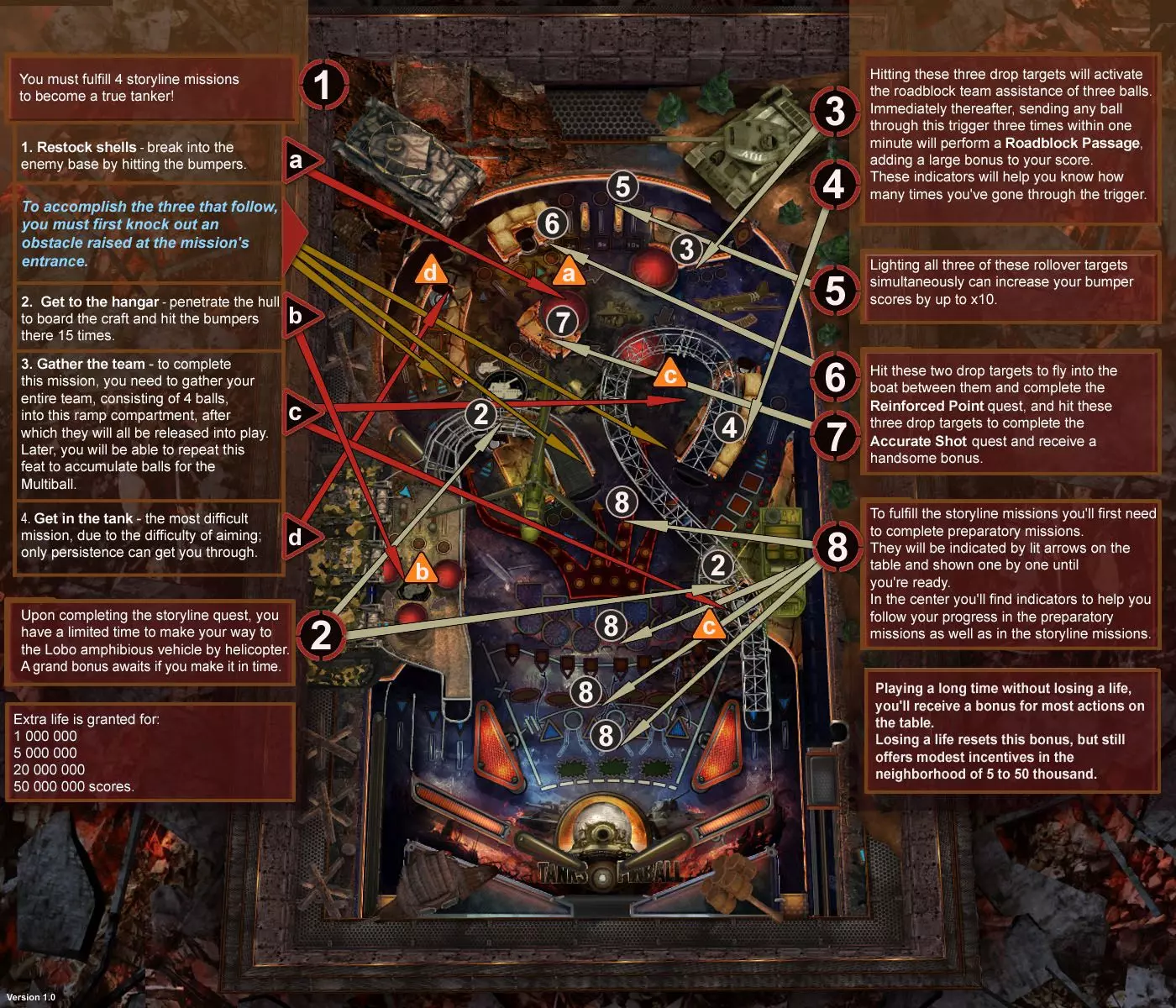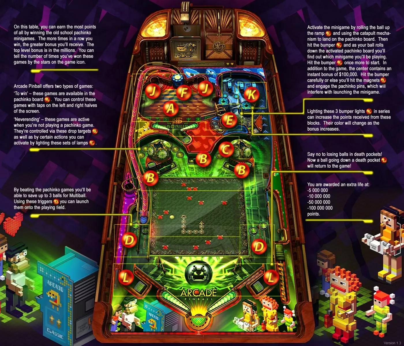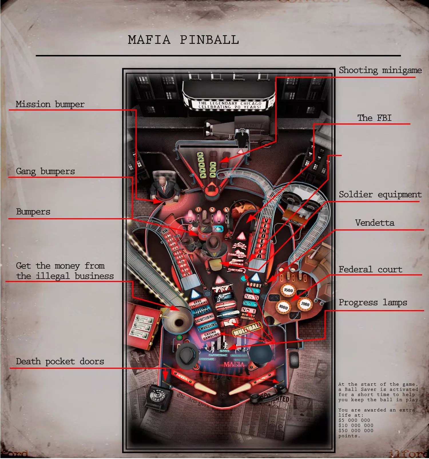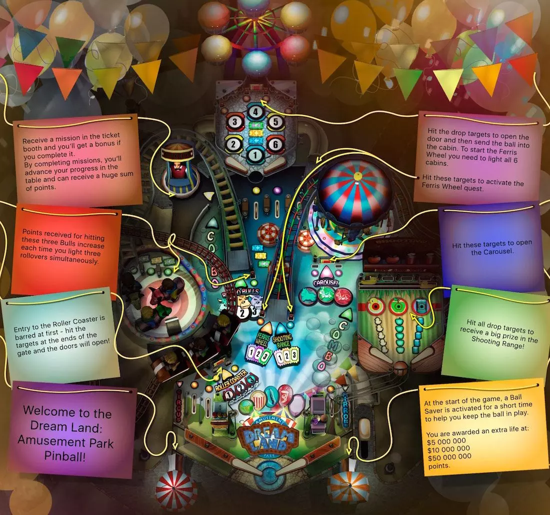 由于游戏未说明具体操作按键,我决定制作一份操作指南,其中还包含了弹珠台的图片指南(已涵盖街头赛车弹珠台指南!) 基础操作 游戏设有帮助板块,但我觉得在具体玩法说明方面有所欠缺。既然帮助菜单中没有直接说明所需按键,我便制作了这份指南供日后参考。 键盘操作 ESC - 打开和退出主菜单 R - 向左旋转屏幕 L - 向右旋转屏幕 Z - 静音所有声音 左箭头 - 左挡板 右箭头 - 右挡板 上箭头 - 向上倾斜 下箭头 - 发球杆 空格键 - 向上倾斜 小键盘3/PageDown - 更改弹珠台角度 据我观察,主键盘的3键无法更改角度。我的键盘有额外的小键盘,当NumLock开启时,3/PgDn键可以切换视角。 以下是我在游戏过程中唯一有响应的按键: 鼠标 左右键 - 查看桌面但未开始游戏时,用于打开菜单 左键 - 游戏中,用于下拉弹球杆 左右键 - 游戏中,任意一键均可激活 flippers(弹板)。将光标悬停在弹板上效果更佳 控制器 不支持控制器 我对无法使用Xbox控制器玩游戏感到非常失望,这是一个很大的缺陷。而且也不能重新绑定键盘按键。 荒野西部