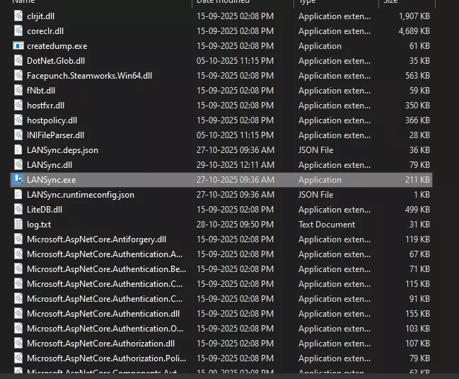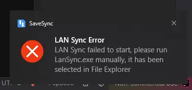 点击是允许它 如果用户账户控制提示未出现,你将看到错误通知,文件资源管理器会自动打开并选中LANSync.exe