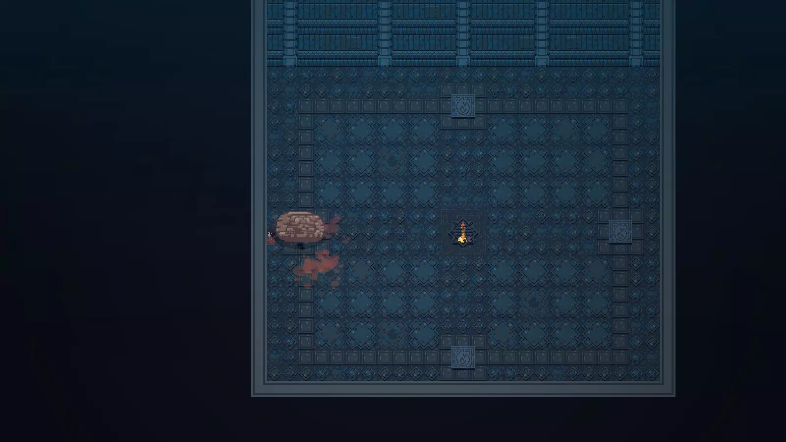 紧靠墙壁的一圈都不会被大脑碰到。 成就:Brain Freeze 用带火的箭矢击杀大脑,按上面安全点的图示做就行了。没难度,需要对时机有所把握。 Part.1 方块 眼魔方块(EYECUBE)(技巧向/白给) 特点: 翻滚4次后会从眼里射出激光 射出激光时眼睛朝下会产生硬直 普通难度: 进门后不要动,蓄满力竖直向上放一箭,唤醒boss。然后不要急着收回箭,等boss的眼睛完全朝下时(也就是准备进行第二下翻滚到第三下的那个时候)收回箭矢,即可击杀boss。(此时boss的眼睛被收回的箭击中而死亡) 如果失败,说明收回箭矢的时机过早,放慢一些多试几次即可。