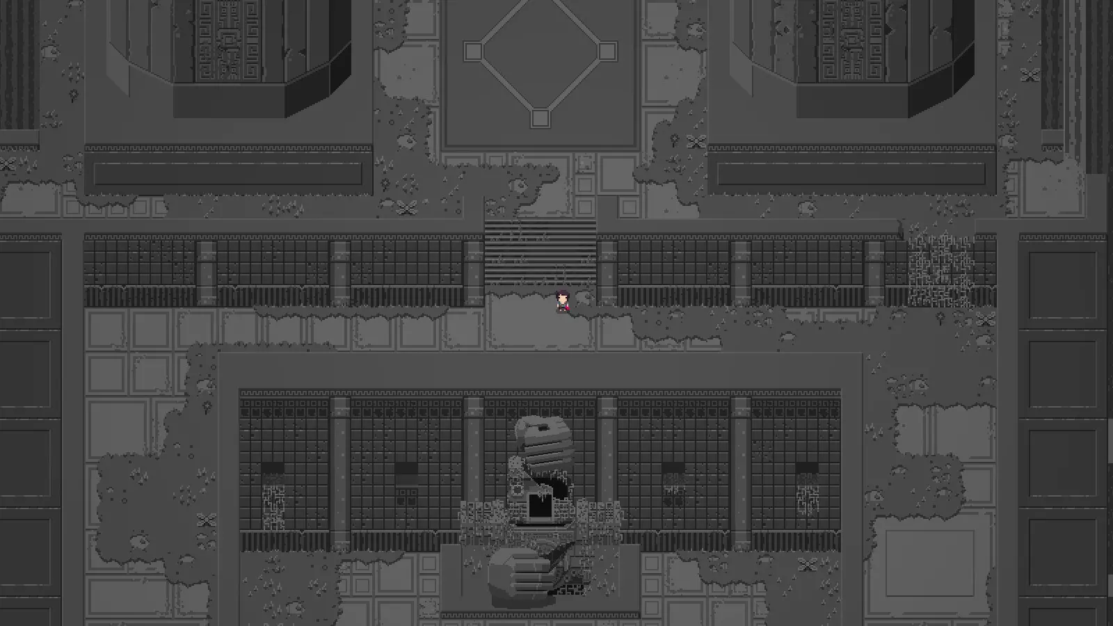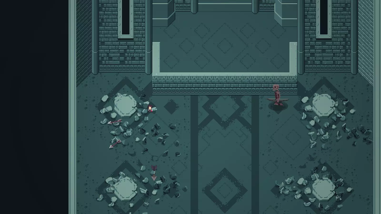 第二部分 冰石像 斯特拉图斯 特点: 会从地面伸出石柱,释放激光后留下冰柱 碰到冰柱会致命,碰到石柱不会,但要小心撞墙 普通难度: 找准机会在其释放激光时翻滚,让激光打碎它的牙齿,然后对准牙缝射箭即可。 成就: Dental Plan 打掉所有牙齿并杀死石像需要耐心,多试几次就能完成。