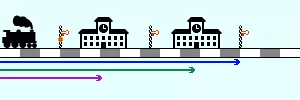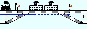 长区间信号用于瓶颈路段,即单轨线路上设有两个或多个车站且有大量列车通行的情况。普通信号仅检查其要到达的车站前方状态,这可能导致两个车站被相向行驶的列车同时占用,形成相互阻塞的局面,即需要玩家手动解决的死锁。当列车到达长区间信号时,会检查至下一个信号机,无论其间是否有车站。若道路畅通,列车会预留轨道直至目标车站。这样一来,反向行驶的列车会看到已被预留的轨道,从而不会进入该瓶颈路段。确保所有通向瓶颈区域的轨道都使用长区间信号,且瓶颈区域内不得放置任何其他信号(例如,中间不得为多站台车站设置信号)
