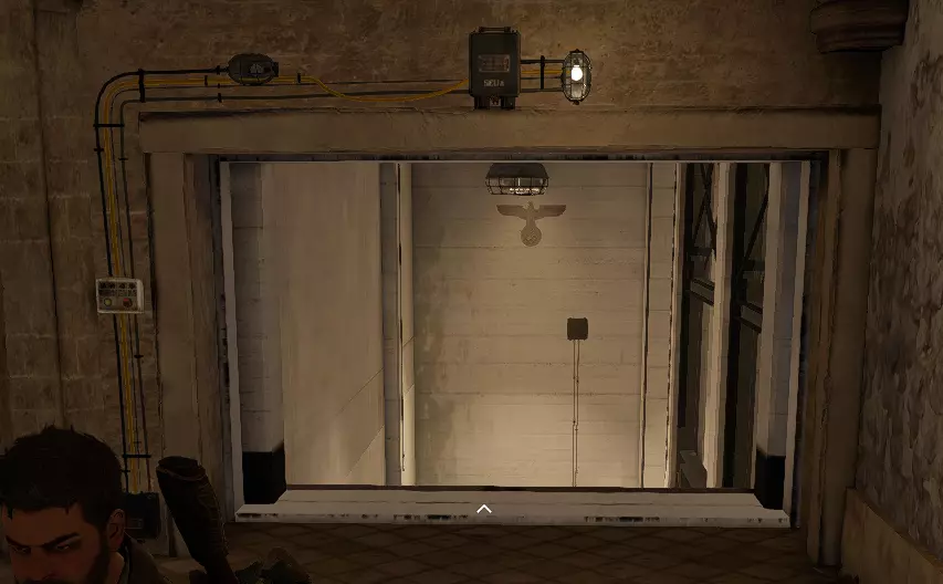 地堡中的工作台位于东侧入口处,在二楼停车场附近。截图上有箭头标识以便查看。可以用炸药炸开房门,或者通过相邻房间的通风管道爬进去。
