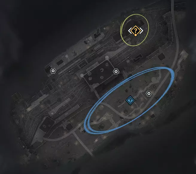 在圈出的建筑内,走下楼梯,找到截图中的楼梯,沿着它向下走,然后左转进入走廊。走廊尽头会有一扇可用炸药打开的门,门旁有一个工作台。