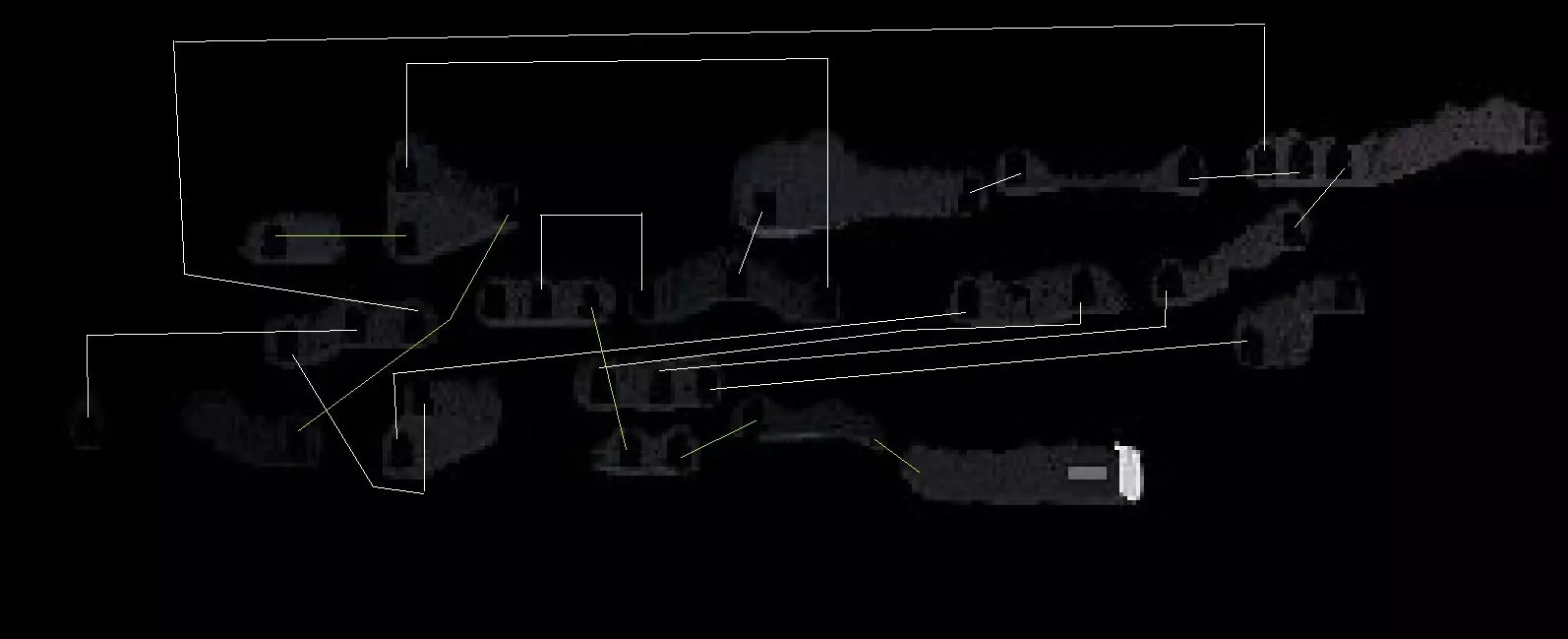 游戏地图截图与洞穴系统导航。我不太擅长这些图片处理,所以用画图工具画了线条,请见谅 :) 地图与洞穴