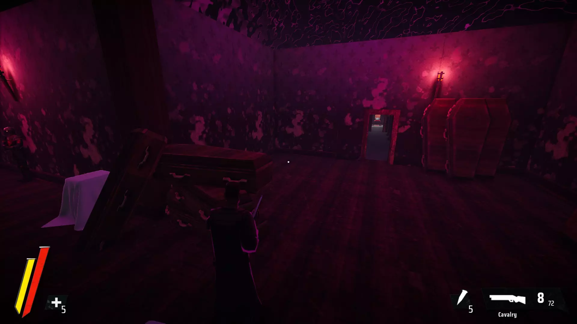 摧毁立式棺材旁的衣柜,以露出一条走廊。