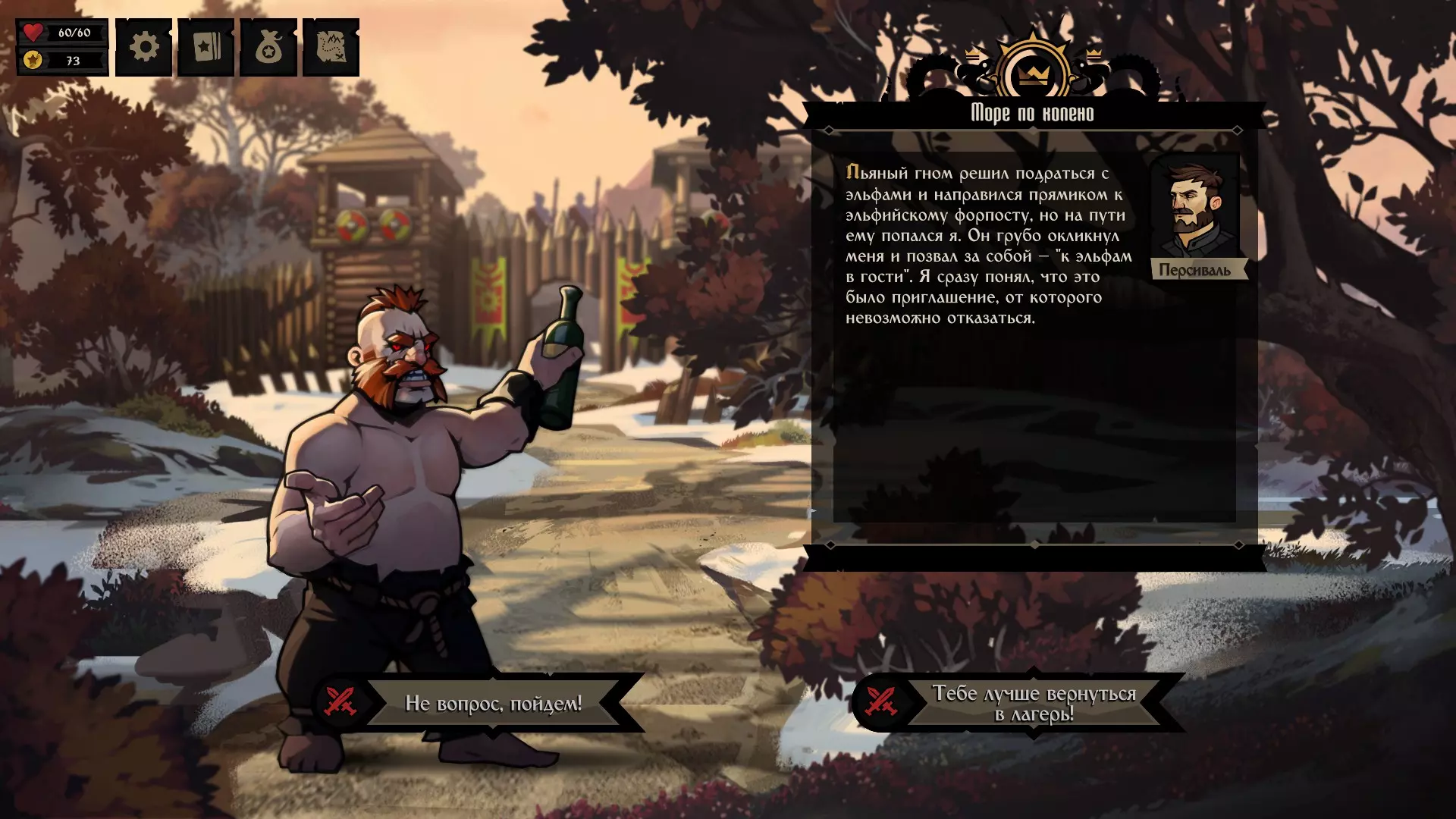 在“可怜的巨魔”事件中,掷骰子以移除他的剑。这可能需要多次尝试,但在某个情况下,骰子会掷出移除他的剑的结果,并选择与珀西瓦尔同行。