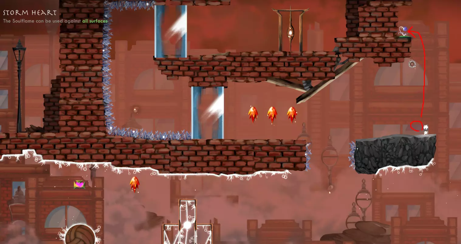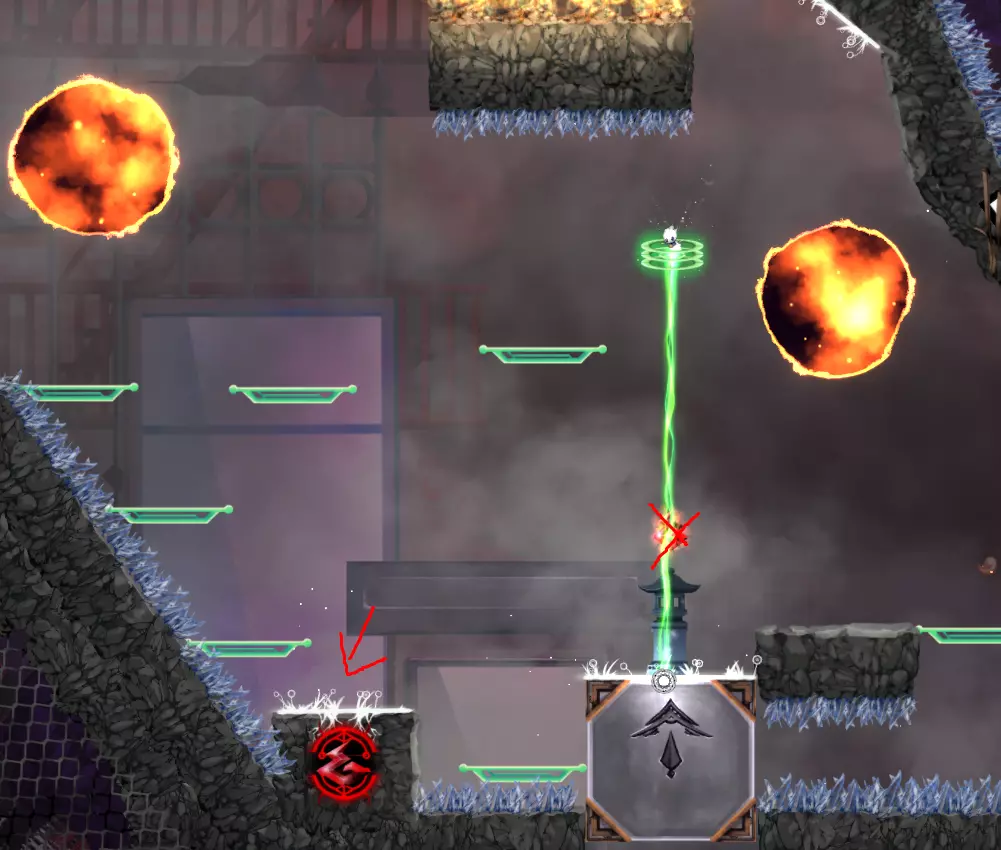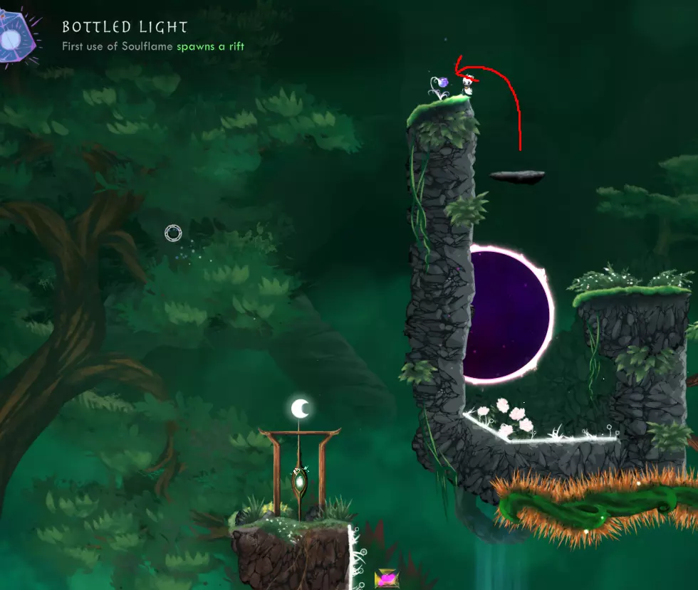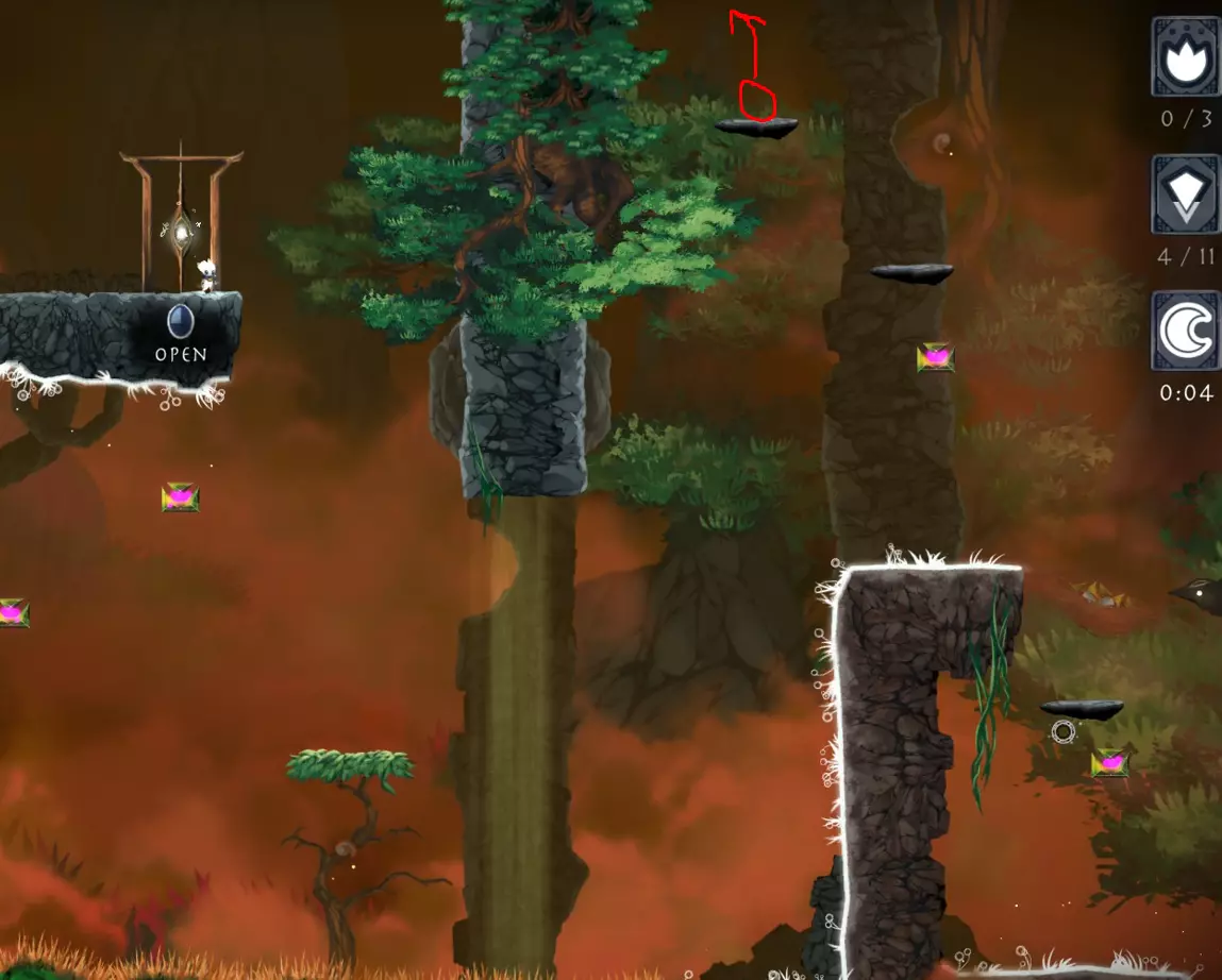 【Just One Shot】-仅使用一次灵魂火焰到达任意传送门。 我不记得是在哪里解锁的这个成就,但你可以在世界1的第一关轻松完成。方法是使用来自世界2的第二个遗物【Skyward Thistle】。实际上,你甚至可以在不使用灵魂火焰的情况下完成这一关,而且仍然能及时拿到时间精华。我刚才测试时就做到了,用时0.68秒。