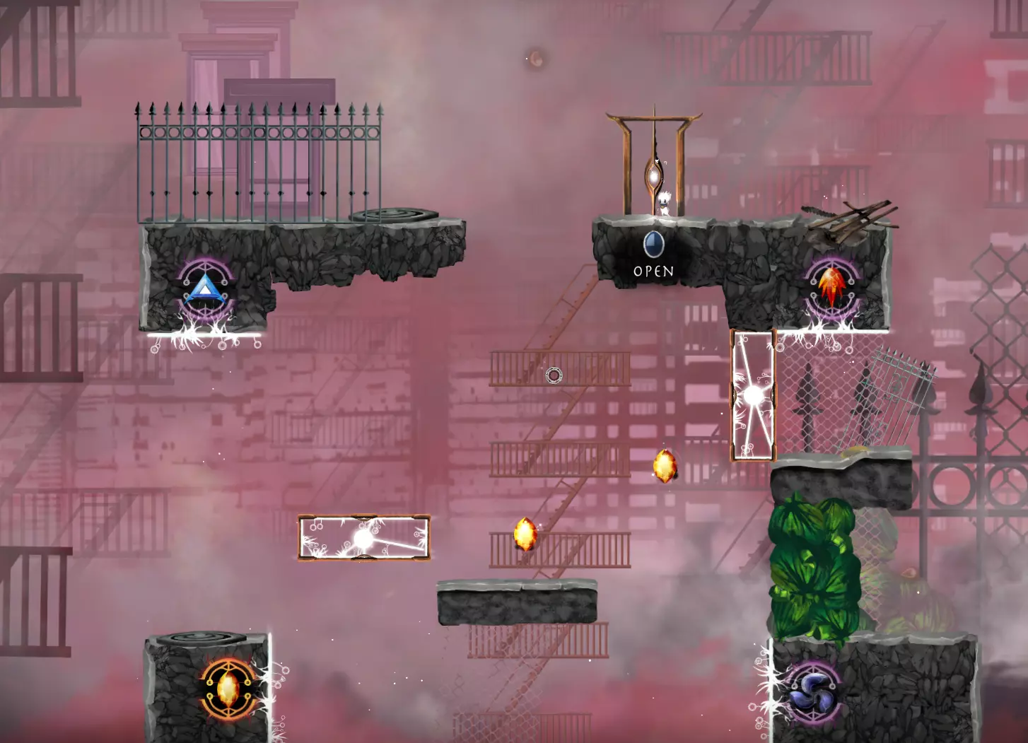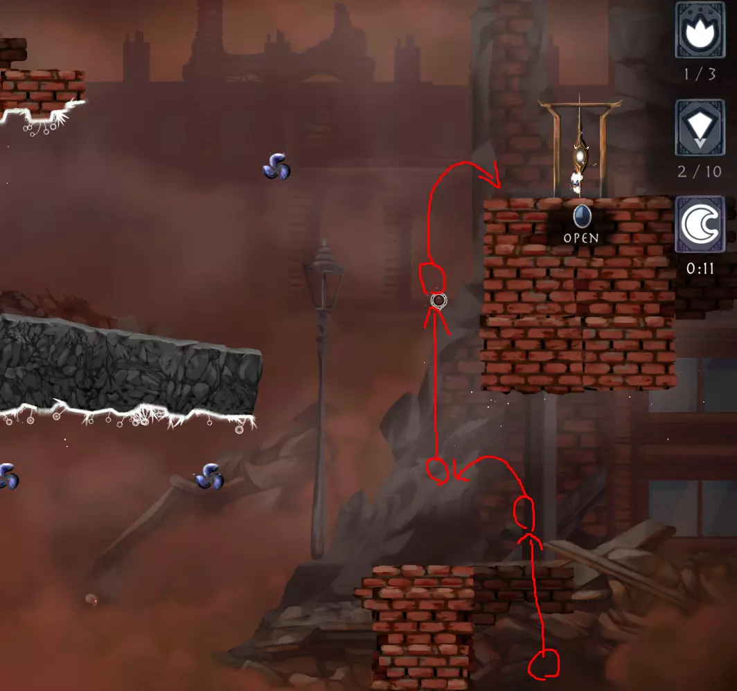 犹豫者——用你的魂火与我连接。你还在等什么? 在最后一关,也就是世界11的第6关,我先什么都不做等了一分钟,然后充能再取消充能,对着随机的墙壁之类的地方使用魂火又过了一分钟,到两分钟的时候才对他使用魂火。我猜等待一分钟到两分钟之间应该就够了。