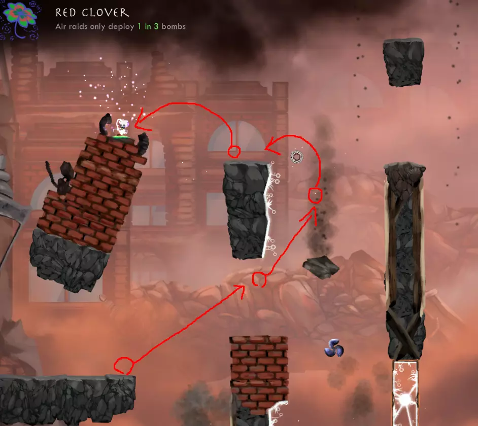 世界10,第2关 - 你不需要任何遗物,只需从左侧走下去并在正确时机使用跳跃即可。不过有些遗物能让过关更轻松,比如【充能包】可以增加信心,或者如果你想从起点跳跃以获得更好位置的话;还有【冲天蓟】能提供更高的跳跃高度。