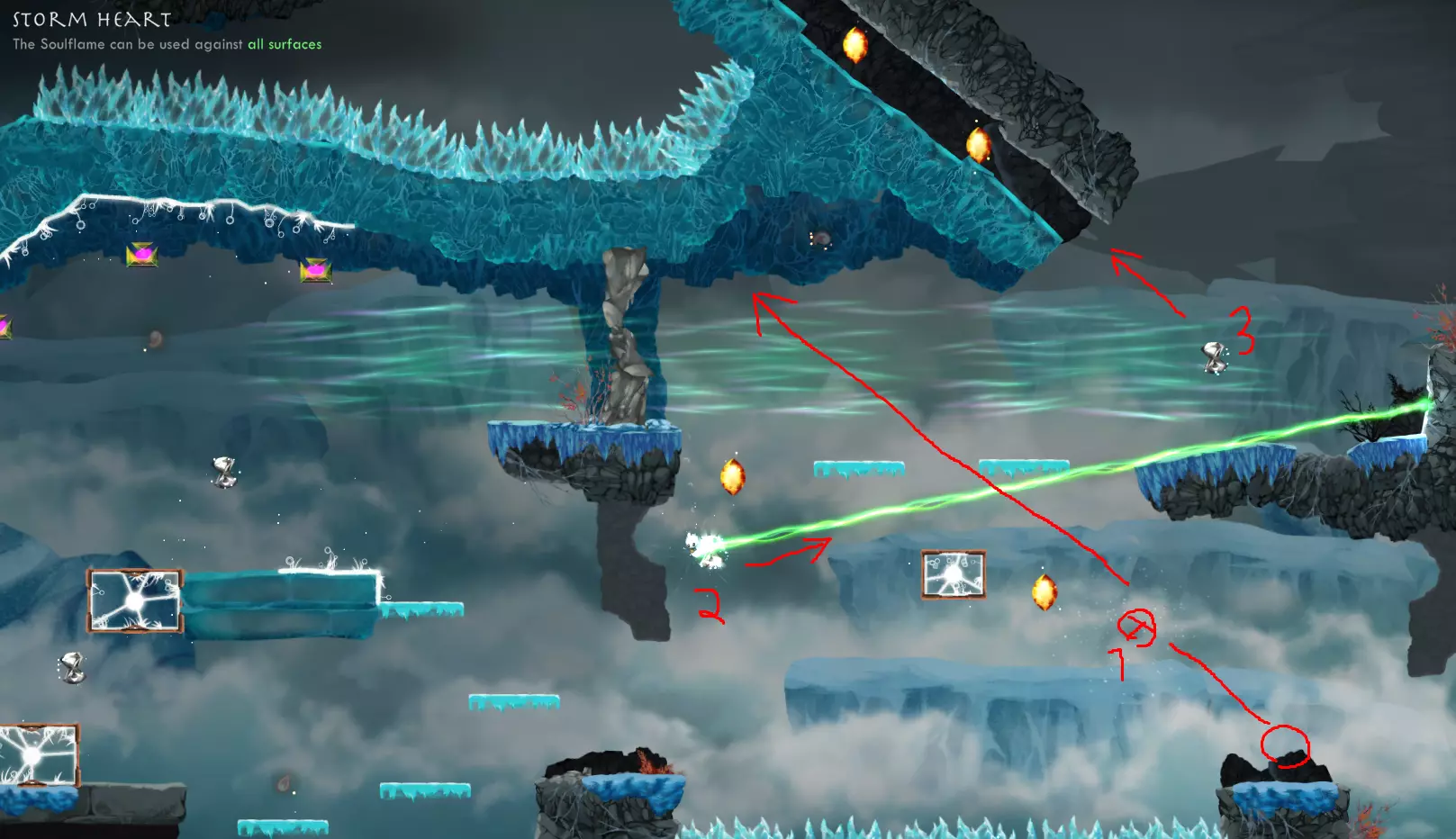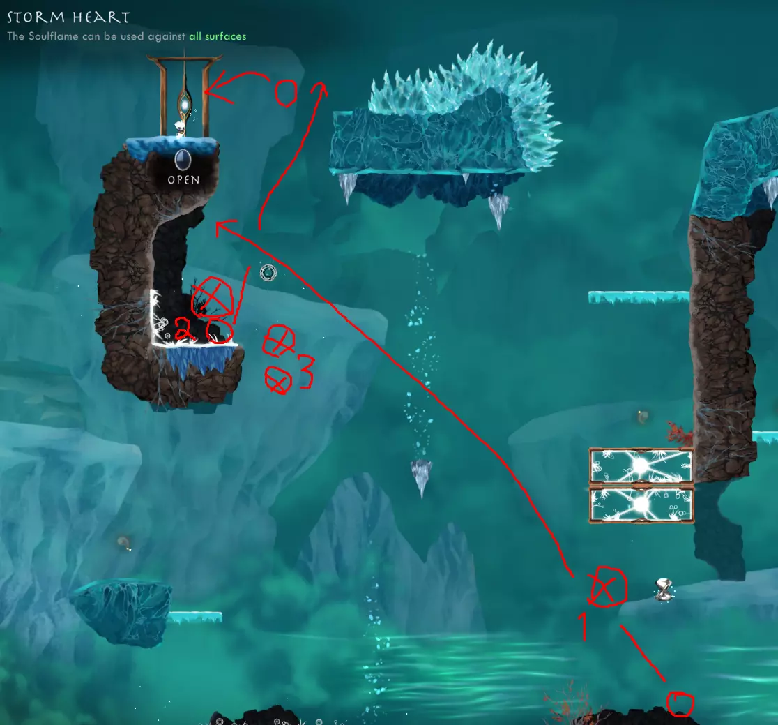 世界4,第3关 - 在冰平台上或其前方的冰顶使用【风暴之心】神器。