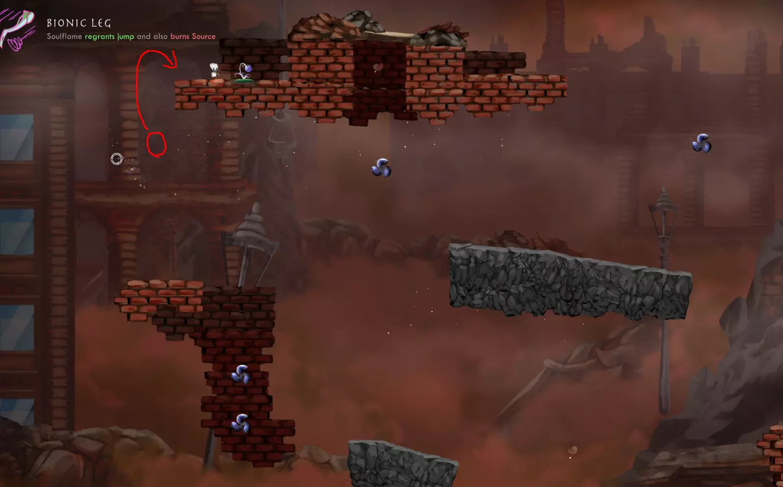 世界6,第1关——严格来说,只要你能找到合适的虚空位置,就不需要任何遗物,但有些遗物可以帮助你更快到达这里,比如【仿生腿】、【遗忘记忆】和【向空蓟】。