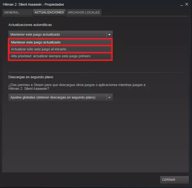 保持此游戏为最新状态。 每当有新更新发布时,Steam 会在任意时刻下载并应用更新,例如打开 Steam 时,就会开始下载最新更新。 仅在启动时更新此游戏。 与上一项类似,但仅在我们启动游戏时才会更新该游戏。 高优先级:始终优先更新此游戏。 如果有多个游戏有待更新,所有选择了此选项的游戏将优先于其他游戏,也就是说,它们的更新会比未选择此选项的游戏先下载。
