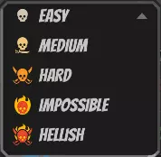 让我们更详细地了解所有窗口。先从难度等级开始,目前共有五种:简单、中等、困难、不可能和地狱难度。