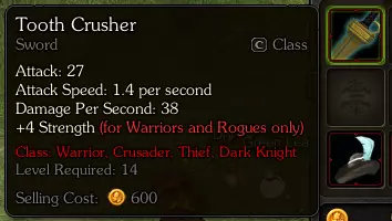 掉落物 普通 - 枯叶(战利品){⭐} [20金币] uncommon - 果酱(食物){⭐} [14金币] - 树脂滴{⭐} [28金币] - 三叶草(战利品){⭐} [32金币] 稀有 - 无烟煤(制作材料){⭐} [50金币] - 黑曼德拉叶(消耗品;特殊物品)[100金币] - 碎齿剑(装备;剑)[600金币]