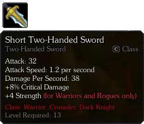 短柄双手剑(装备;双手剑)【499金币】