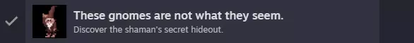 离开该区域,前往萨满小屋。 最后提醒!如果还没在森林出口停下并捡起粉色浮标,那下一部分的一个易错过成就就无法获得了! The Unbe-leaf-able Finale! 将迷幻草叶子、珍珠和双齿兽牙齿交给萨满。 一段剧情后,你会得到一枚石戒指,并被带到一个新区域。