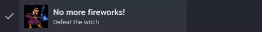 这次回去战斗吧! 攻击基本没用,你需要做的是等待女巫的火花变成蓝色,然后连续使用三次【防御】选项就能获胜。 赢得这场战斗后将解锁NO MORE FIREWORKS。